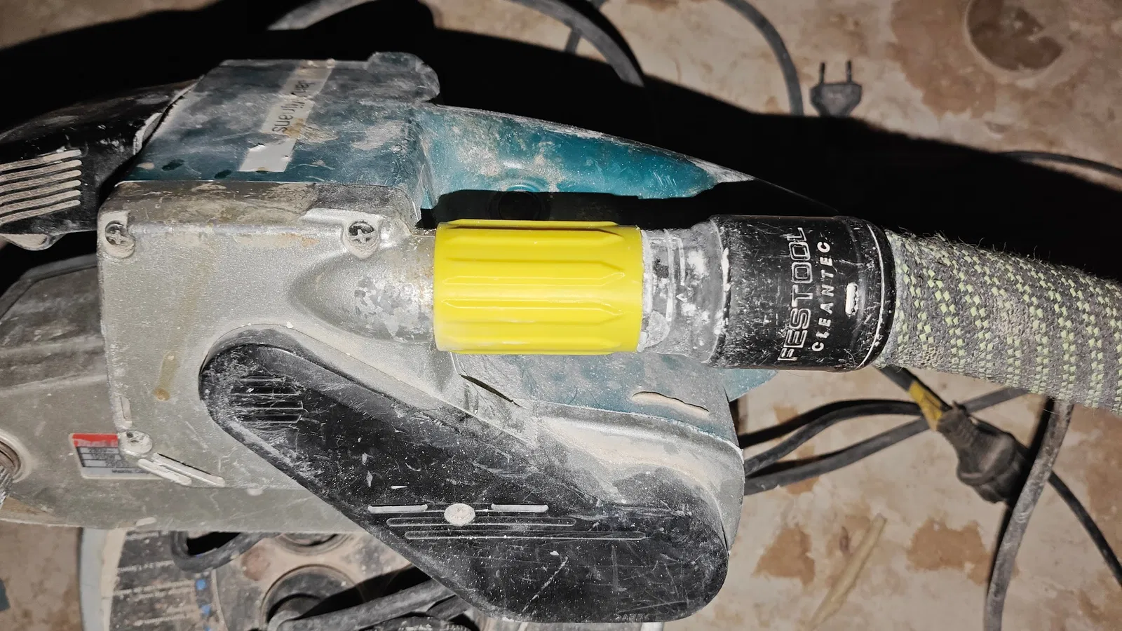 Đầu nối chuyển 32mm sang 33mm để gắn máy hút bụi Festool với máy chà nhám Makita. Thiết kế có mũi tên bên ngoài chỉ hướng về phía đầu 33mm để lắp đúng chiều.