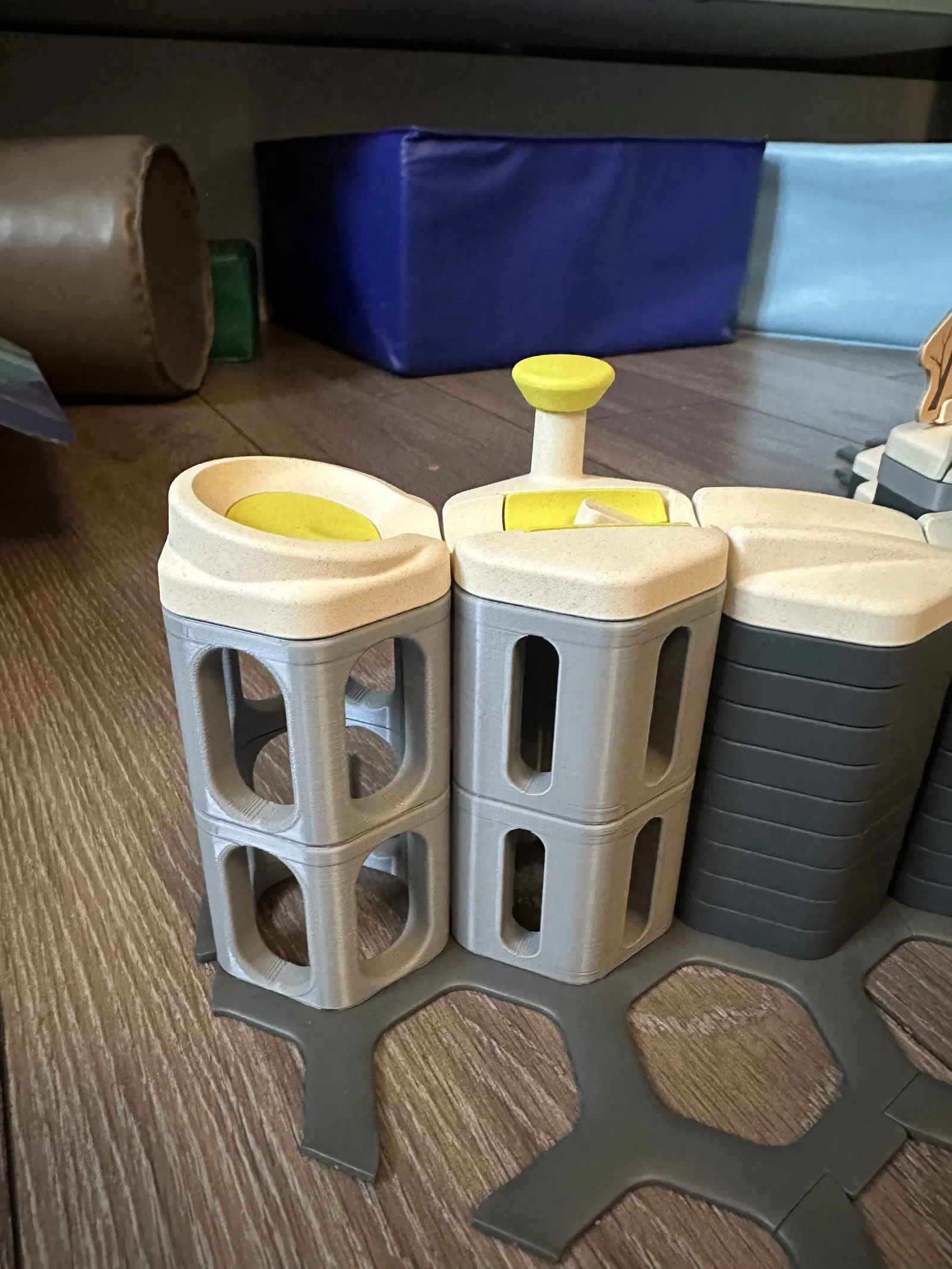 Đá nâng cao GraviTrax Junior cao tương đương 5 viên. Có bản tiêu chuẩn ~33g dễ in và bản light ~23g nhẹ hơn nhưng overhang lớn; mình in thử không cần thêm support vẫn chạy ổn.