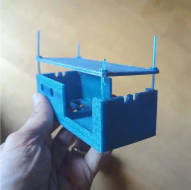 Cái hộp này dễ in. Mình dùng filament PET “plastic bottle”, chịu nhiệt rất tốt (nhiệt độ nóng chảy trên 200°C) nên hợp để bảo vệ mấy cái heatsink lớn... Đóng hộp bằng đinh tán từ sợi filament, hàn chảy bằng mỏ hàn (xem hình).