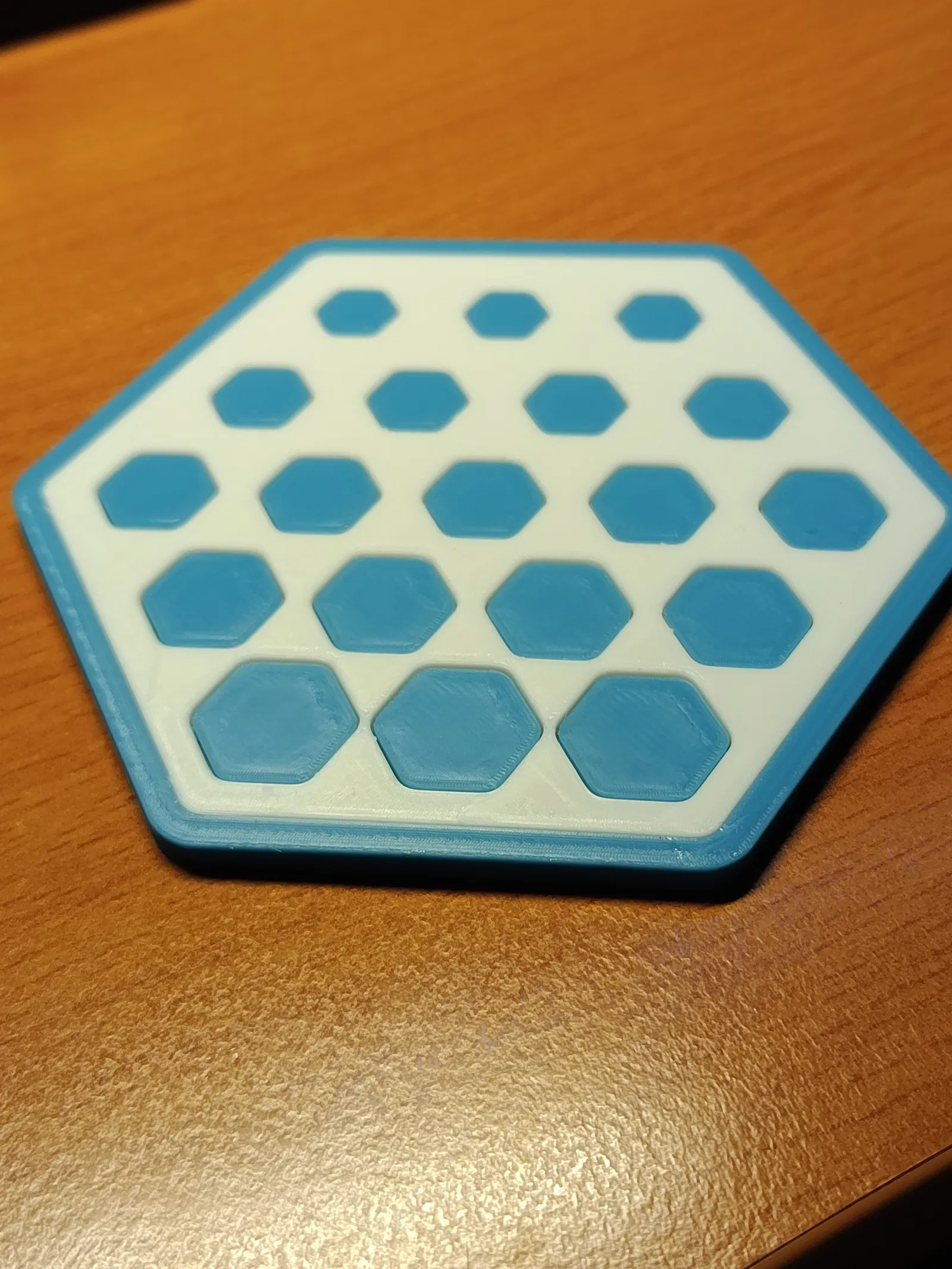 Một mẫu lót ly (coaster) hình lục giác với họa tiết lục giác phủ toàn bề mặt và hiệu ứng mờ dần theo một hướng. Dễ tùy biến màu in theo sở thích; nhớ chia sẻ bản in của bạn nhé.