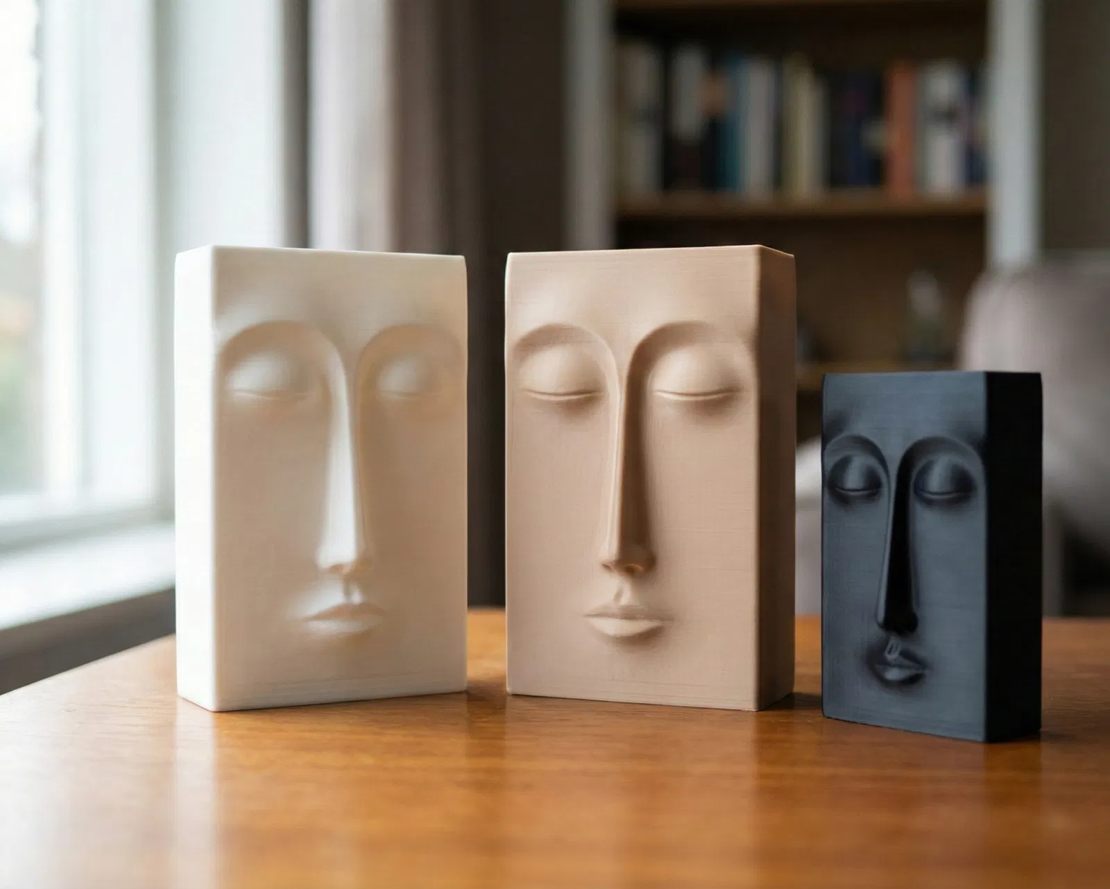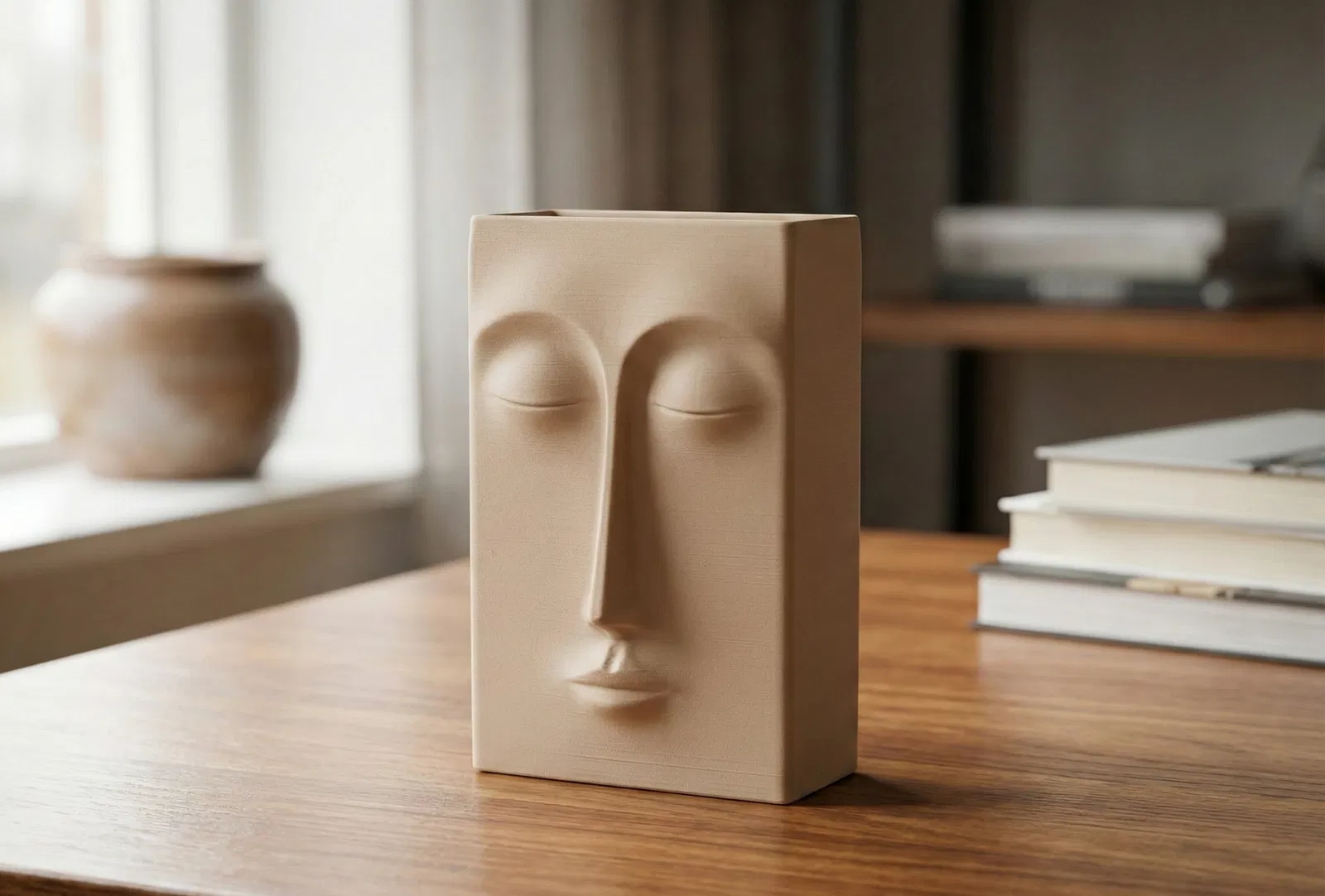 Thêm chút chất nghệ thuật trừu tượng cho không gian nhà bạn với chiếc bình hoa nhẹ nhàng này! Thiết kế in 3D này kết hợp đường nét gọn gàng cùng biểu cảm gương mặt thư thái, rất hợp để cắm hoa khô hoặc trưng riêng như một món decor trên kệ hay bàn làm việc.