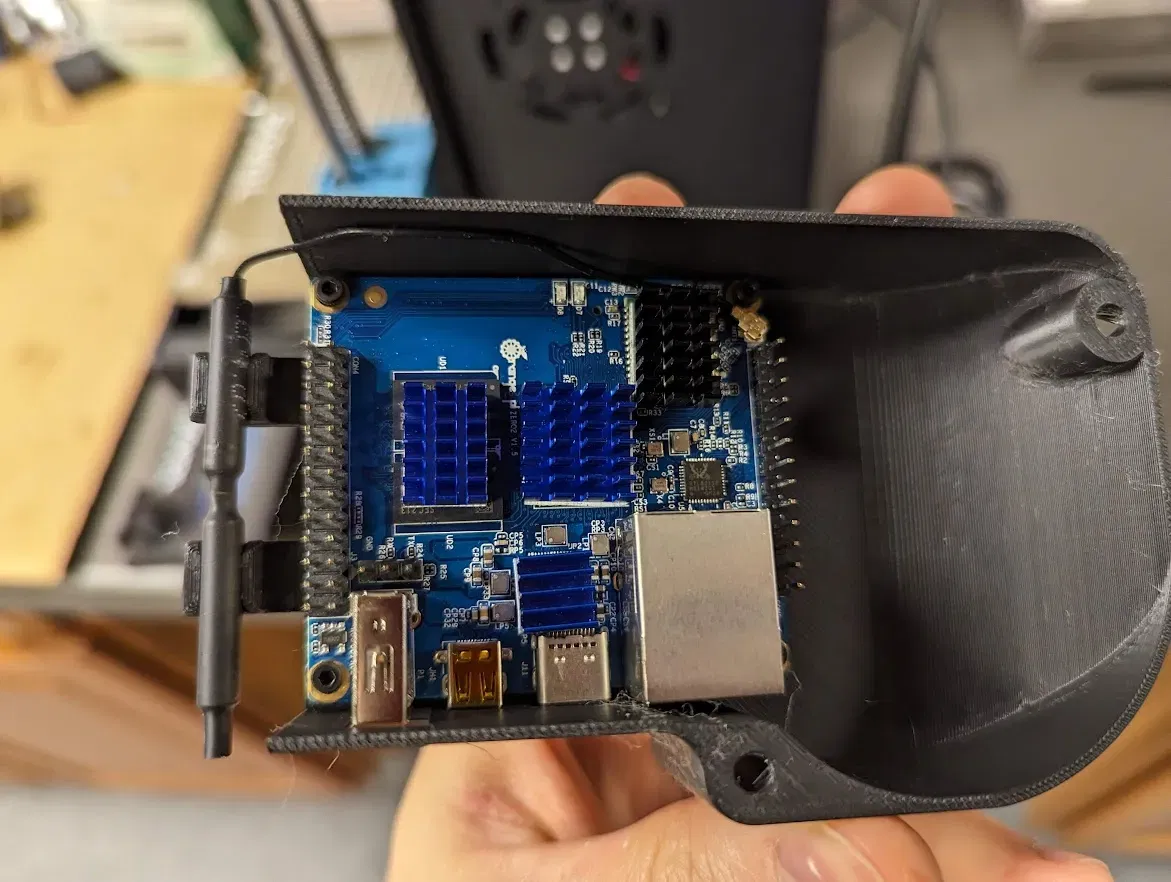 Tôi đã từng gắn Orange Pi Zero 2 dưới giường, nhưng CPU sẽ nóng hơn 90°C khi tôi in với giường ở 100°C trong một ngăn. Di chuyển nó đến quạt PSU có nghĩa là nhiệt độ không bao giờ vượt quá 75°C ngay cả khi ở trong một ngăn nóng.