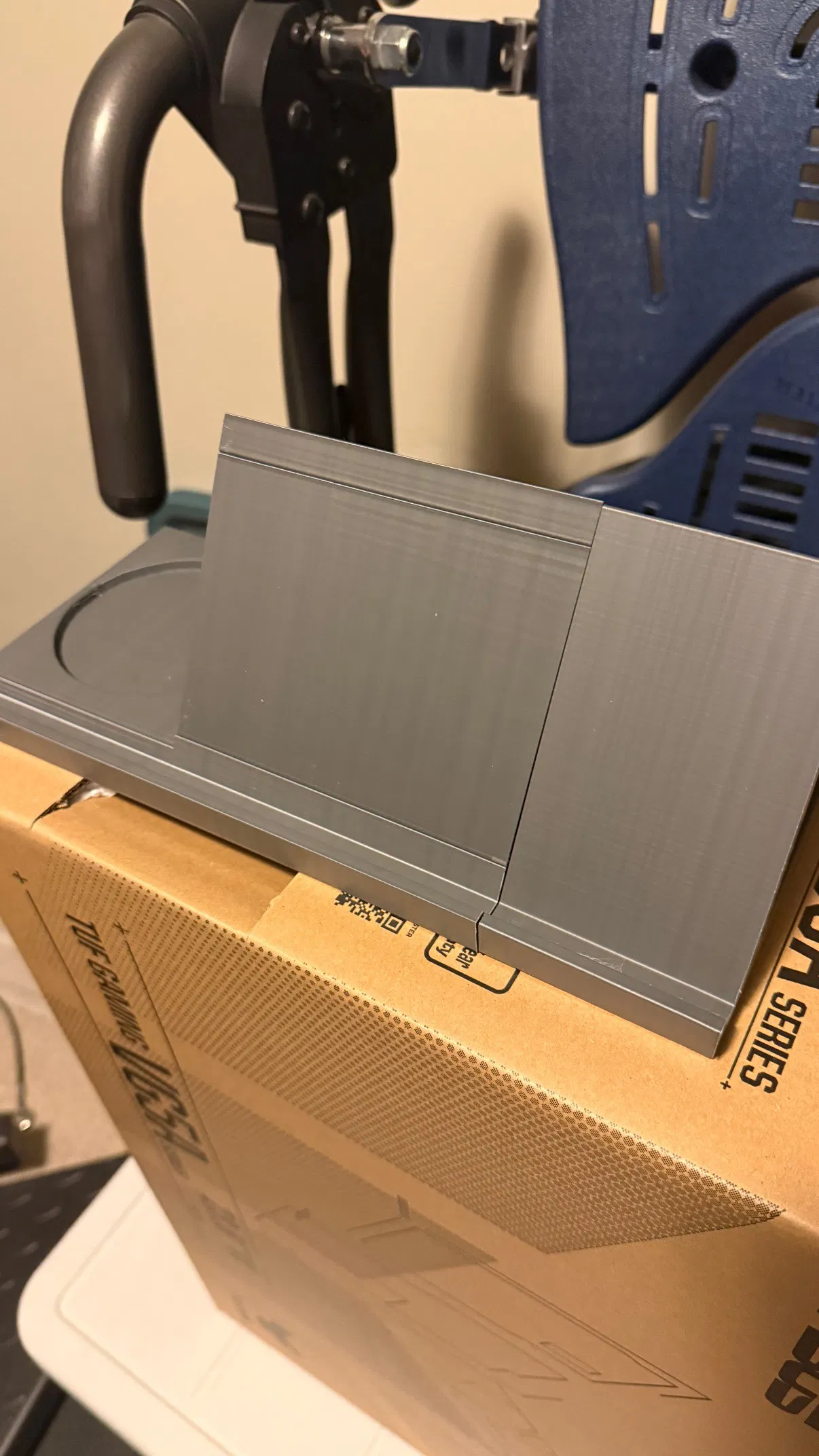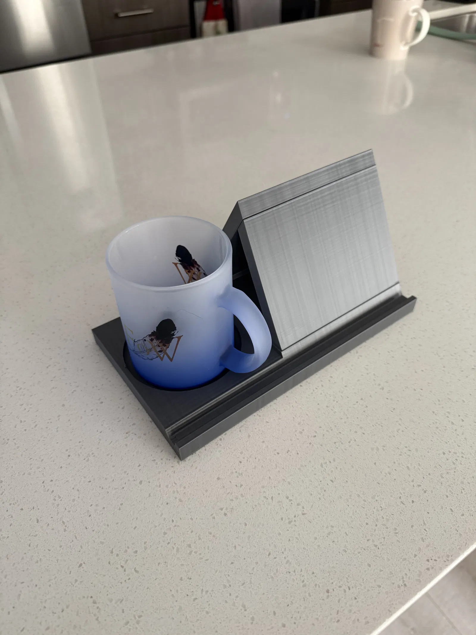 Model dựng bằng SolidWorks. In với 15% infill trên Ender 3 V3 KE. Phần base được in dựng đứng và chỉ dùng support ở đáy vì 240mm là giới hạn tối đa của mình. Khe để ly bị hơi lỗi nhẹ do in theo hướng đó, nên có thể cần thêm support hoặc in nằm phẳng trên máy in lớn hơn. Nếu không muốn gắn extender thì in bản base không có lỗ.
