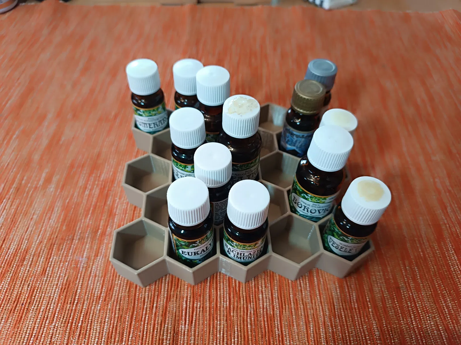 Organizer tinh dầu đơn giản cho 23 chai. Giúp sắp xếp gọn gàng, tránh để chai tinh dầu nằm rải rác hoặc bị đổ ngã trong ngăn kéo. Giờ mỗi chai có chỗ riêng, nhìn gọn và dễ tìm hơn.