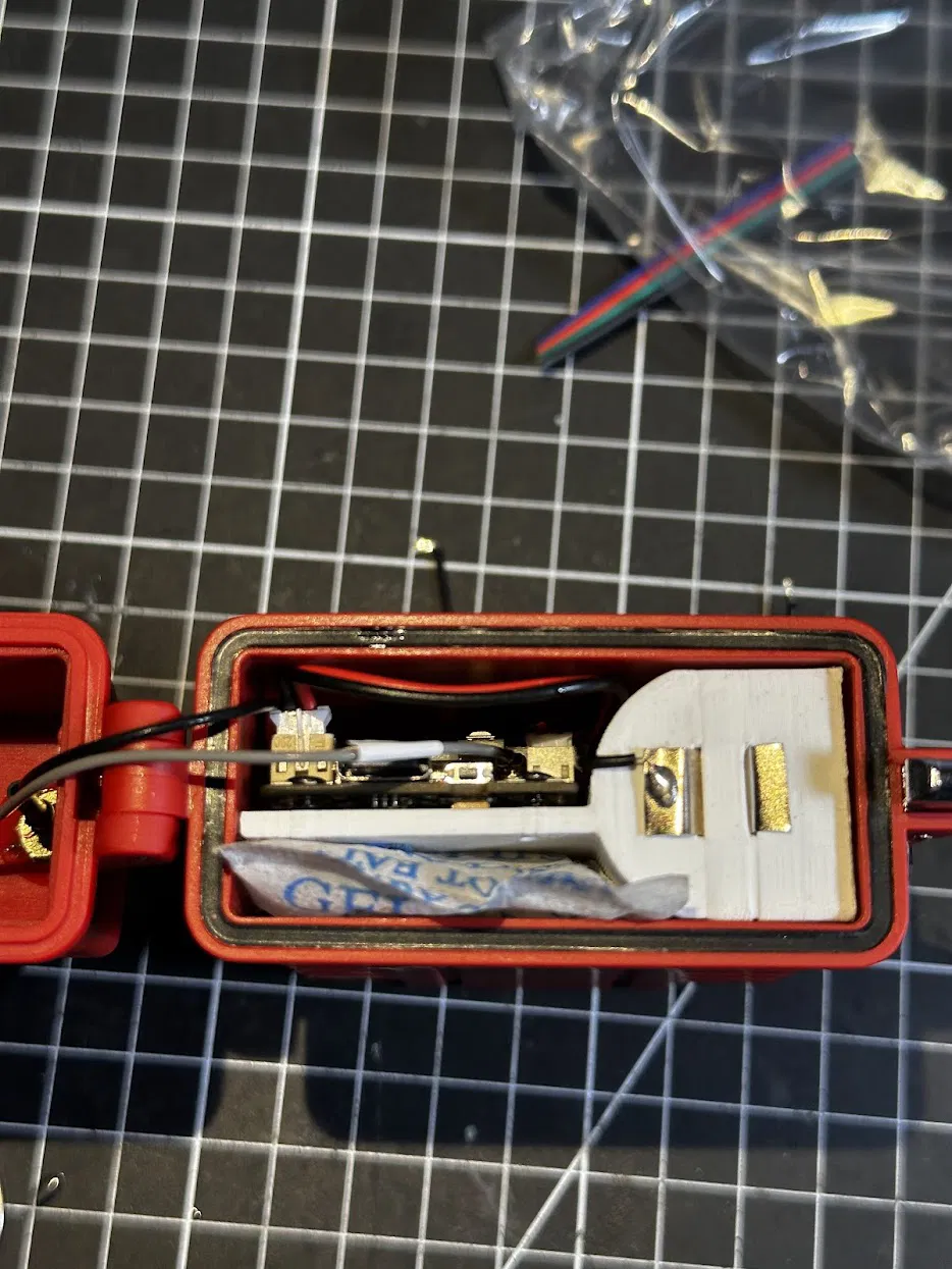 Dùng dao rọc giấy/dao hobby làm sạch 2 khe (slits) ở hai đầu phần giữ pin. Có thể in ra đã sạch, nhưng ngay cả trên Bambu P1S mình vẫn phải nạo nhẹ để luồn dải nickel cho lọt.