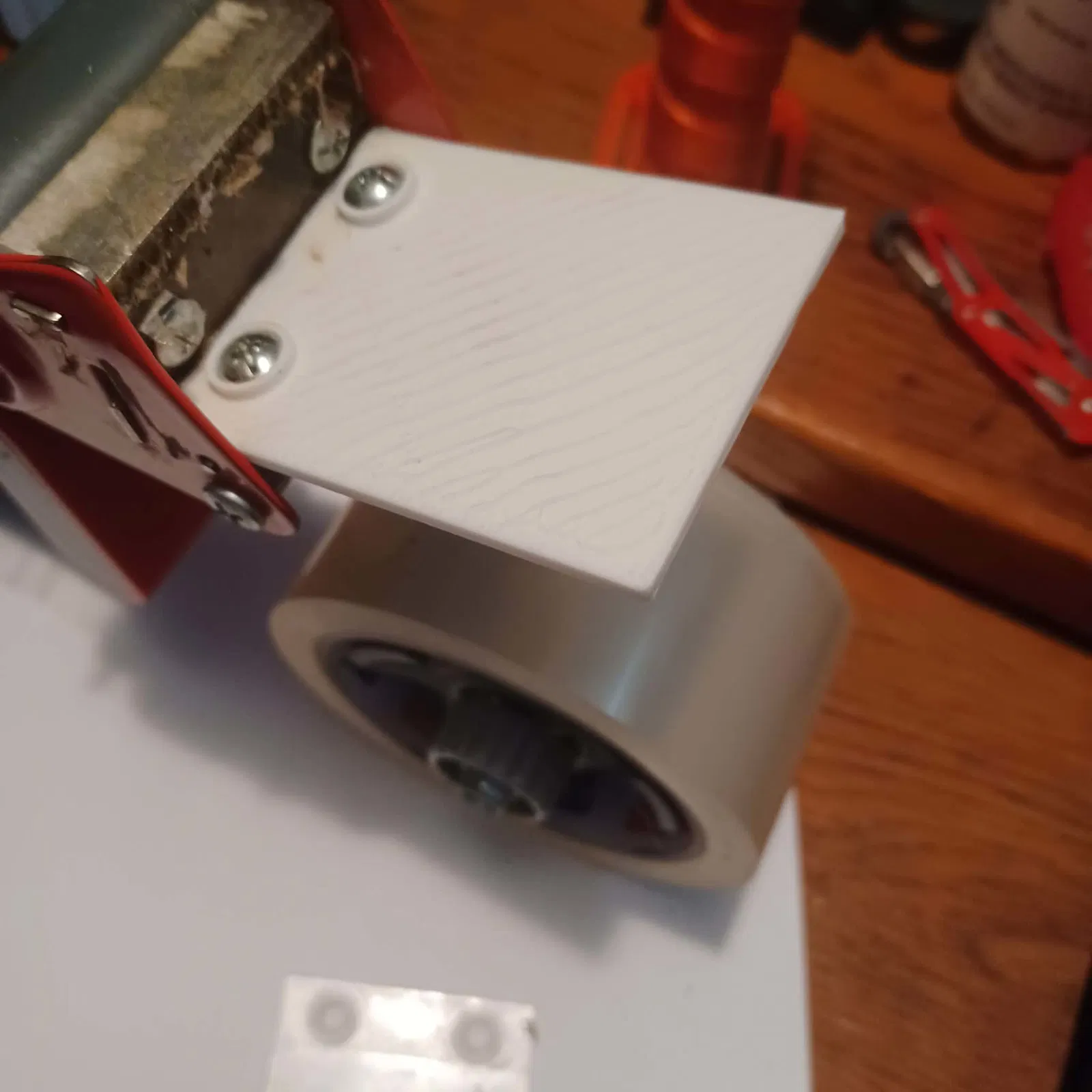 Mẫu Tape Gun Guard Plate thay thế tỉ lệ 1:1 cho guard plate và cutter ejector bị bể trên tape gun. Thiết kế dựng trong Creatlity Print; in PLA trên Ender 3 V3 KE, 125% speed ~22 phút, infill 90% cho chắc.