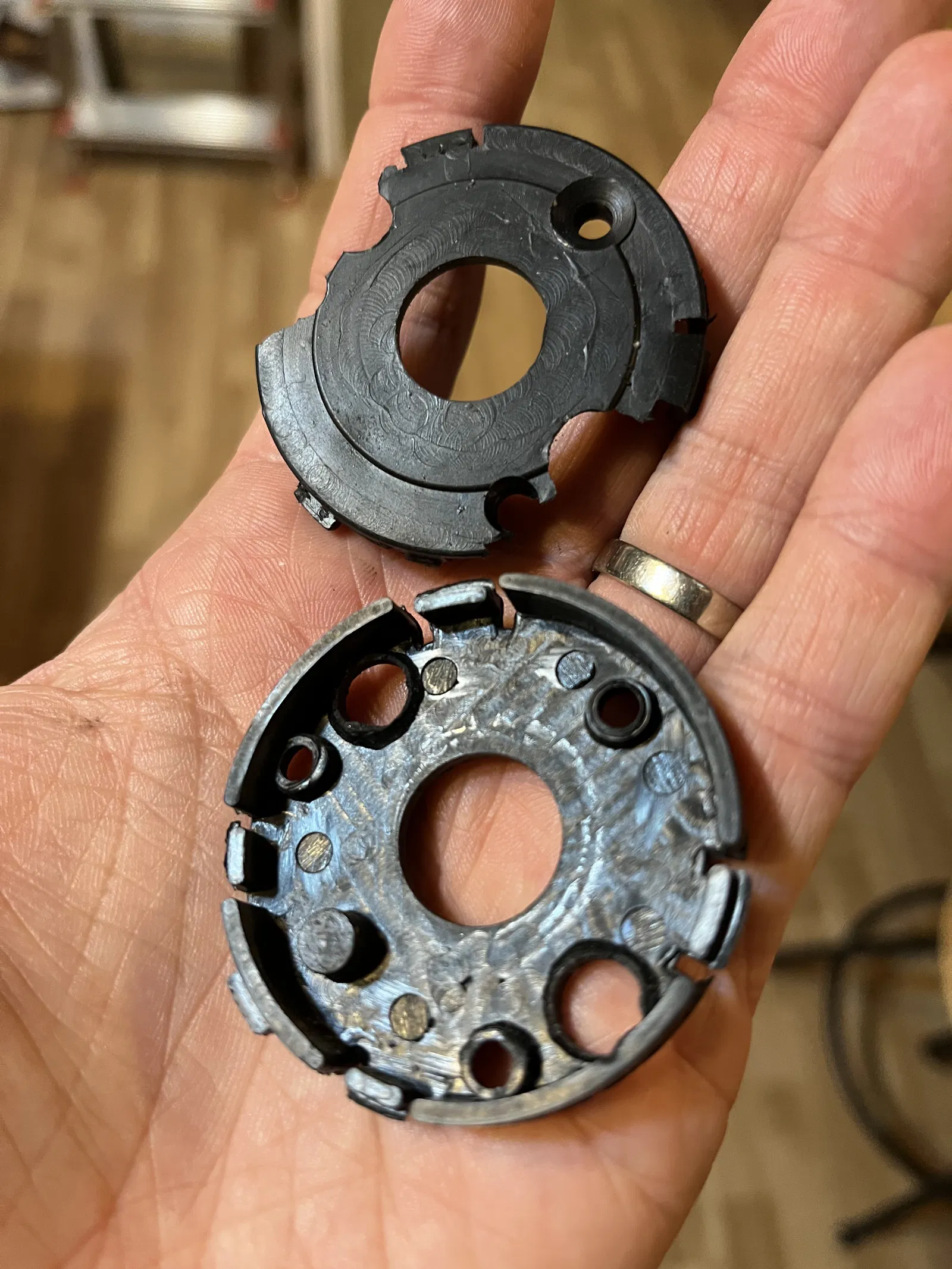 Mình làm miếng thay thế này cho ốp rosette cửa loại cobra. Miếng zin quá yếu nên bị gãy (như bạn thấy trong một tấm hình).