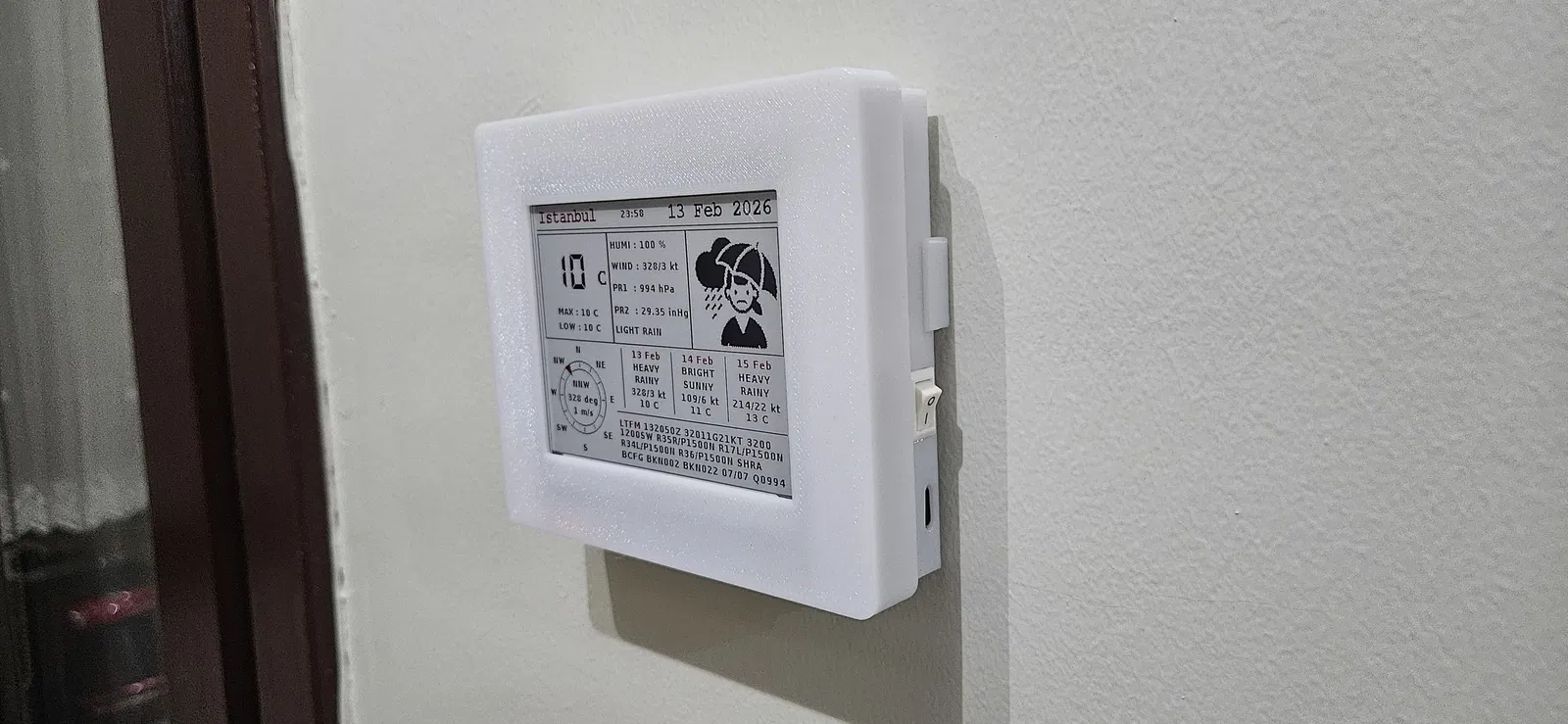 Mẫu weather station cho pilot dùng màn hình E-paper 4.2" Weact, kèm thiết kế vỏ (case) để bạn in 3D. Lưu ý hàn jumper SB3 khi dùng ESP32, và tham khảo danh sách linh kiện mua từ AliExpress.