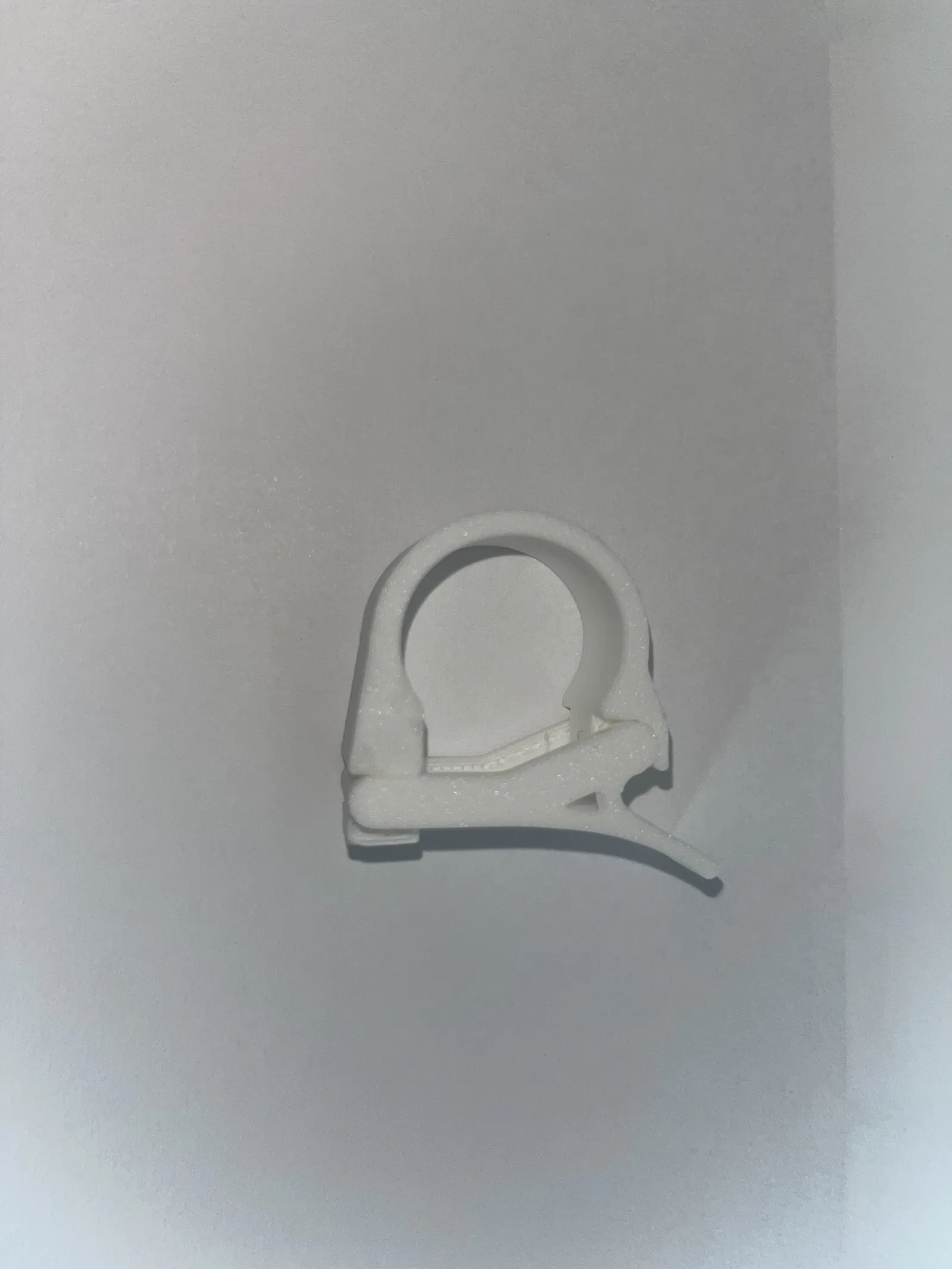 Mẫu kẹp dây cáp “Unhinged” có 2 điểm nối, trong đó 1 điểm đóng vai trò như bản lề, giúp lắp ráp dễ và gọn. Thiết kế đơn giản hơn so với kiểu print in place, phù hợp để quản lý dây cáp nhanh.