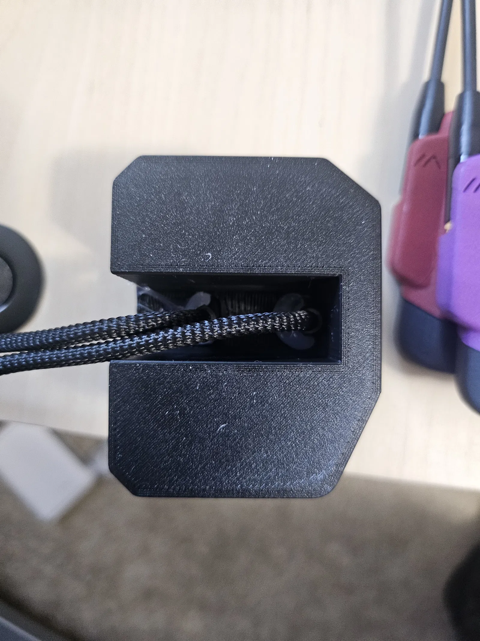 Trong lúc test, mình in ở layer height 0.3mm thì độ ma sát vừa khít, giữ cáp rất ổn. Nhưng khi in ở layer height 0.2mm như bình thường thì cáp không đứng yên, nên mình xử lý bằng cách chấm thêm chút keo nến (hot glue) để cố định lại.