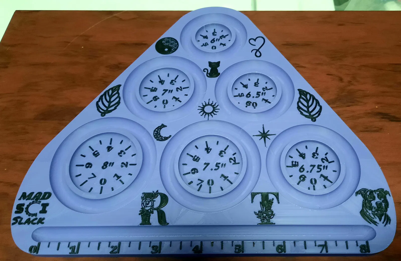 Khay in 3D nhẹ, tiện để layout vòng tay và vòng cổ theo các kích cỡ phổ biến bằng đơn vị Imperial. Có rãnh vòng và rãnh thẳng kèm vạch đo “string length” giúp canh chiều dài sợi dây khi xâu hạt.