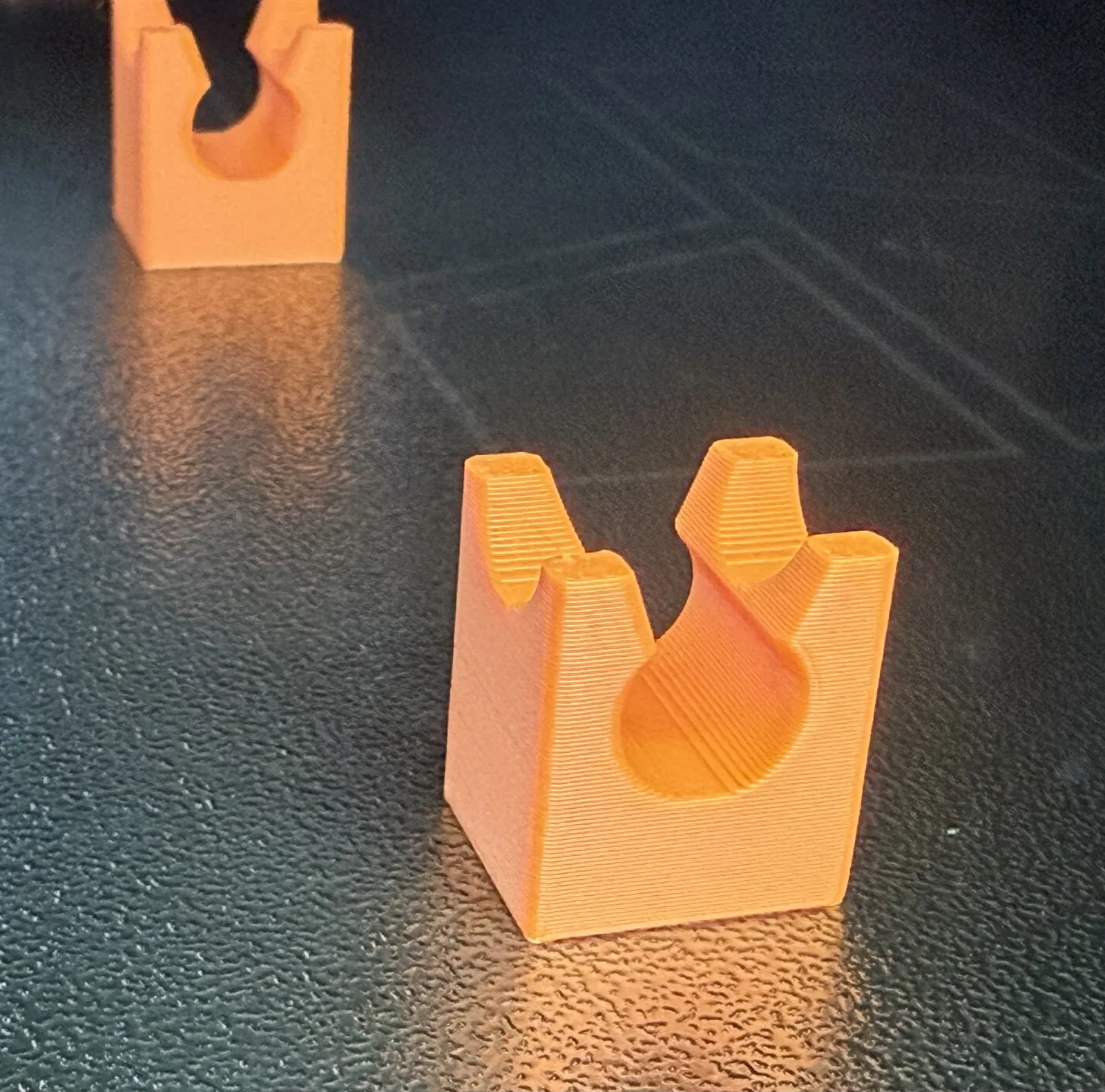 Một vài cái chân đế bị hư trên một cái vỉ lót nồi/khay làm nguội IKEA LAMPLIG của tụi mình. Mình lấy thước kẹp (calipers) ra đo một cái chân còn tốt rồi dựng nhanh lại trong TinkerCAD. Mình in bằng TPU nhưng nó vẫn khá dễ bị gõ rớt ra. Mình nghĩ PETG sẽ hợp hơn. Mình để 3 walls và 100% infill để nó cứng cáp hơn một chút.