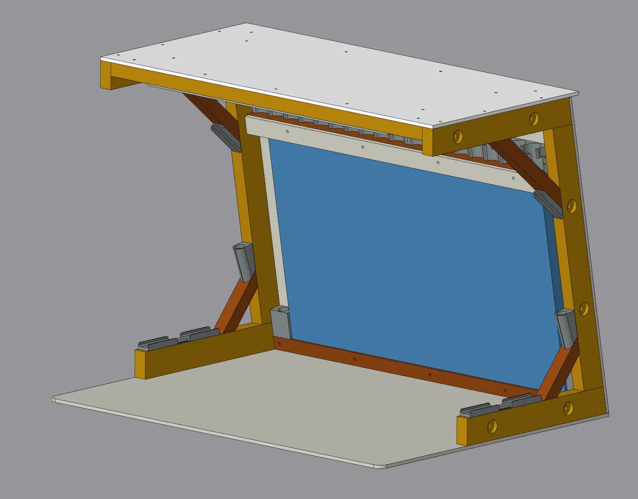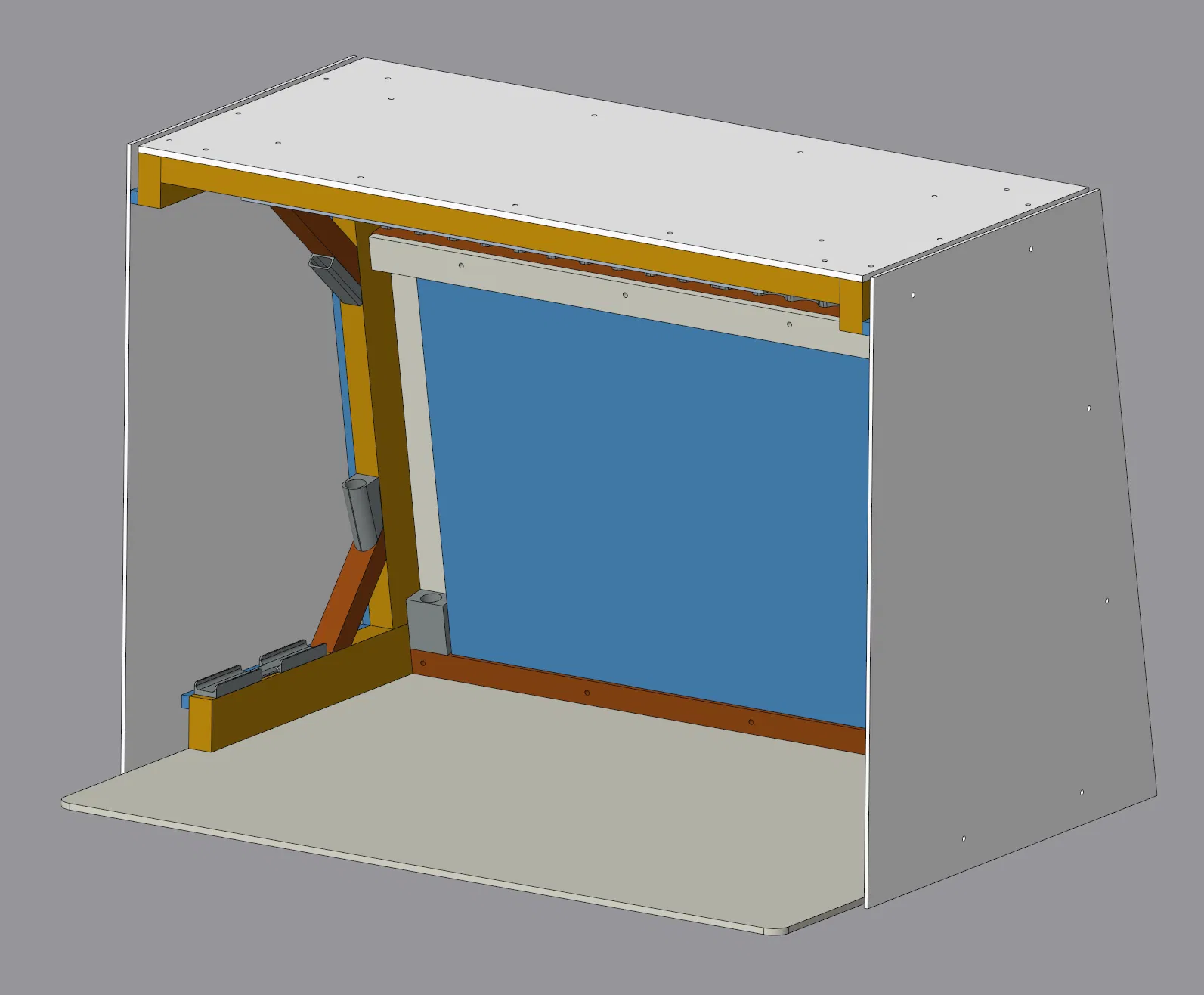 Các tấm acrylic được cắt laser qua sendcutsend. Đáy và lưng đều 24”x18”, nóc là 24”x12”, toàn là kích thước có sẵn, và góc cho hai bên là 80 độ. Bạn cũng có thể cân nhắc làm bằng plywood ¼”, nhưng mình thích bề mặt mịn của acrylic hơn.
