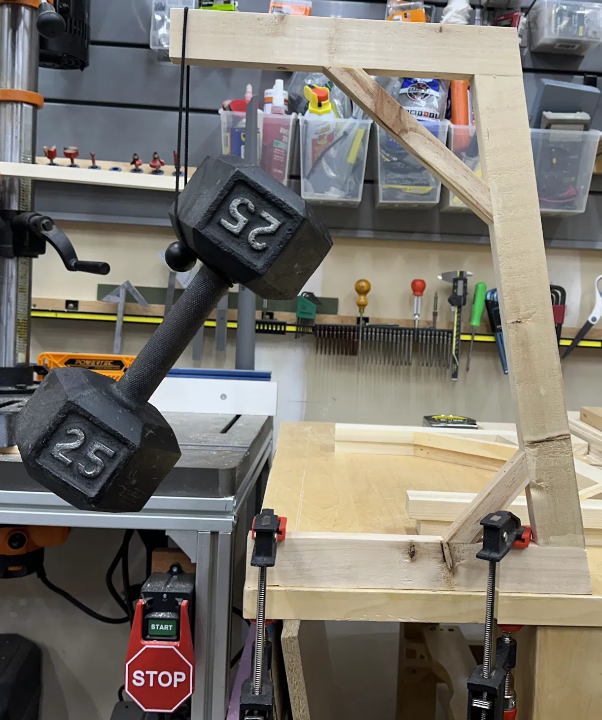 Phần làm khung gỗ khá cơ bản. Dụng cụ điện mình dùng chỉ là chop saw để cắt các đoạn gỗ theo chiều dài (mua từ cửa hàng vật liệu/đồ gia dụng) và máy khoan để khoan/bắt liên kết. Thường tới đoạn này mấy anh youtuber mộc sẽ nói “dùng cưa tay cũng được nha!” — nói thiệt là xạo. Mình không làm vậy, mình cũng không muốn làm vậy, và dù về lý thuyết thì làm được, mình không bao giờ khuyên người mới bắt đầu làm theo.