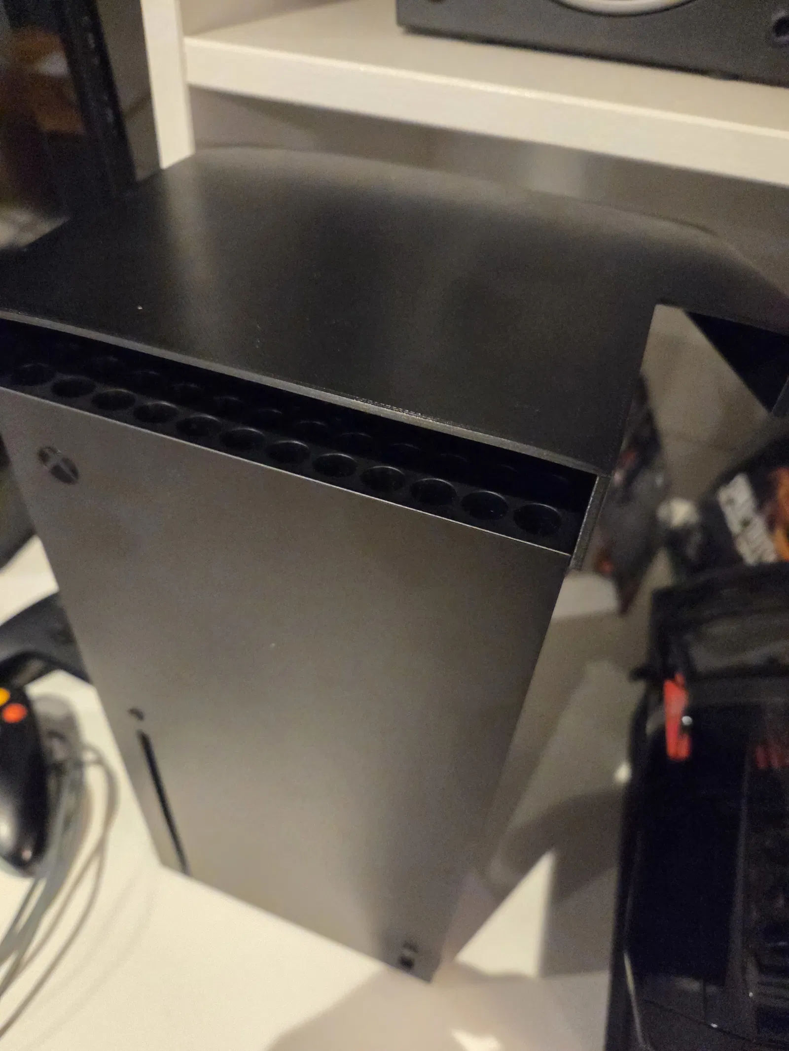 Ống thoát gió định hướng low profile cho Xbox Series X, phù hợp không gian chật và giúp dẫn khí nóng thoát ra ngoài để tránh tích nhiệt trong các hộc/kệ. Có gờ chống tuột; kèm Gcode và STL.