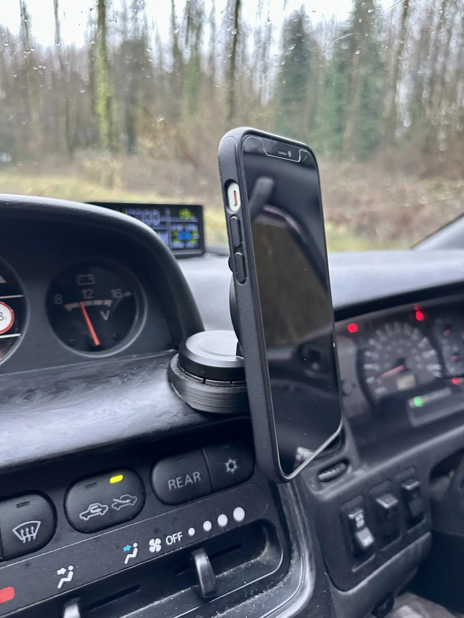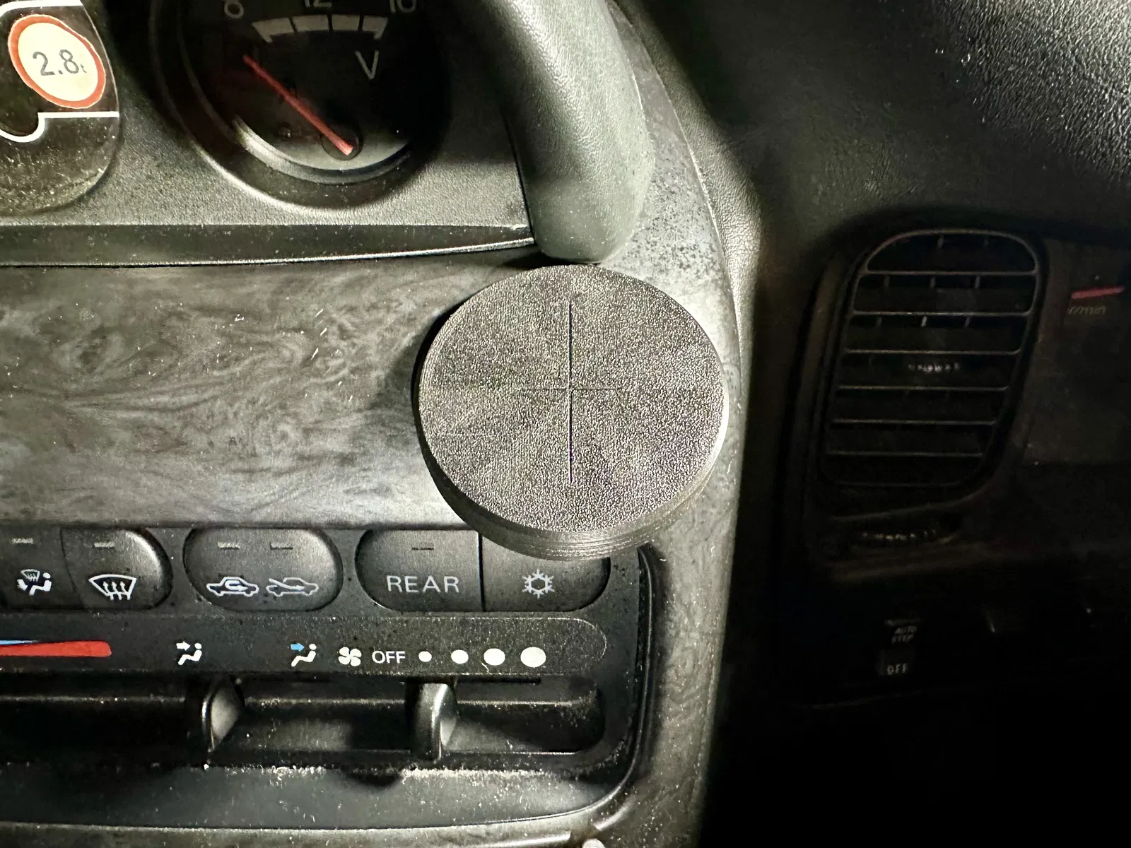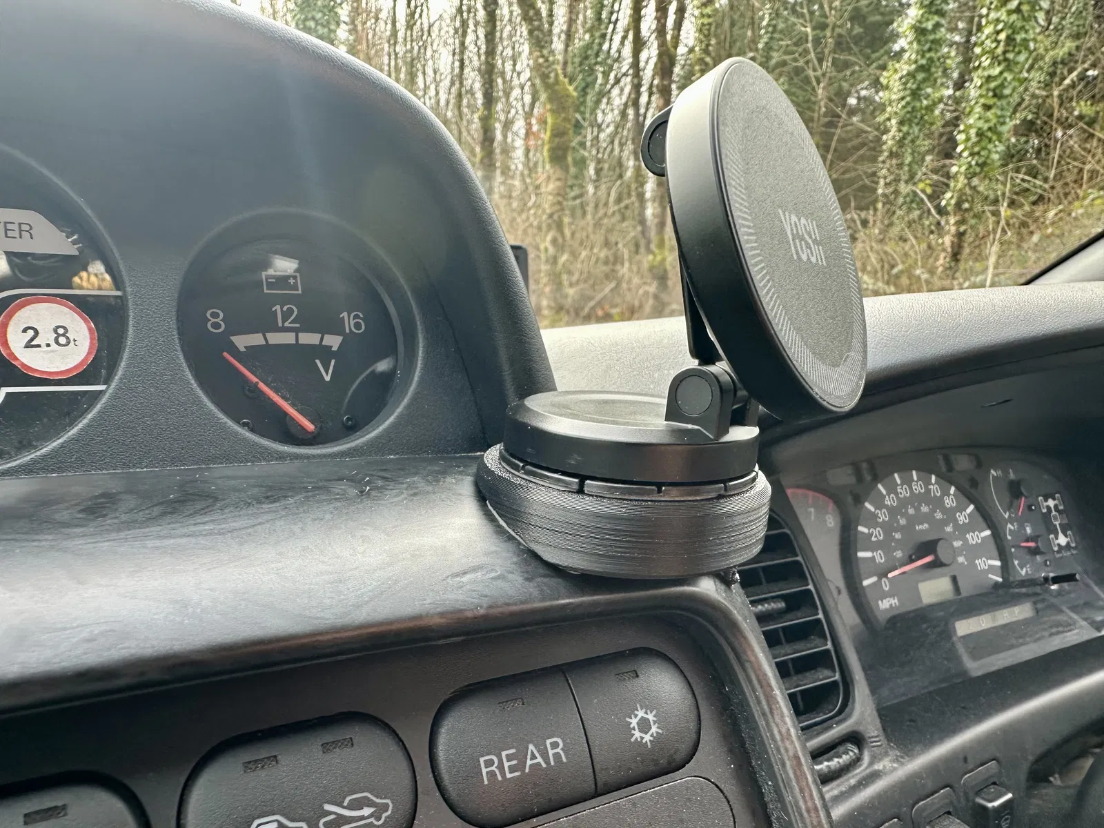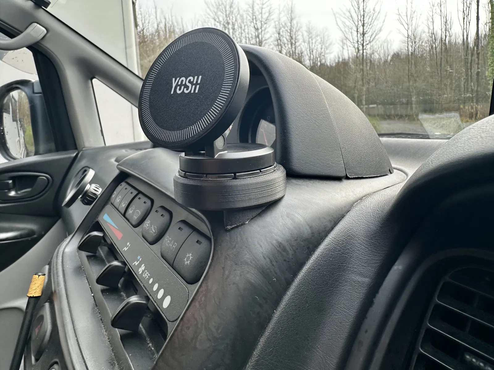 Đây là một cái đế kê (standoff base) cho phone holder, giúp tạo bề mặt phẳng và cân để gắn một phone holder kiểu MagSafe lên khu vực taplo của Mitsubishi L400 Delica.
