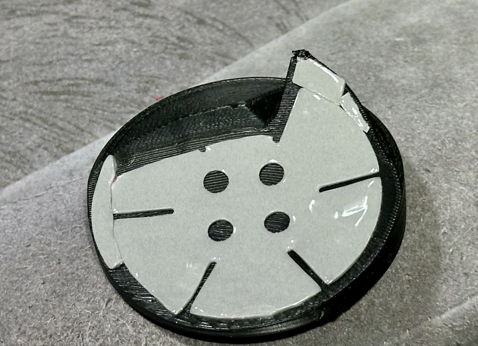 Mình in kèm các đường dạng crosshair để canh cho dễ (xem hình). Mình dùng Polymaker HT-PLA (high temp) và lúc đó để nhiệt nozzle hơi cao (235°C). Mình gợi ý in bằng ABS, ASA, HT-PLA hoặc có thể PETG, nhưng mình mới chỉ thử với HT-PLA.