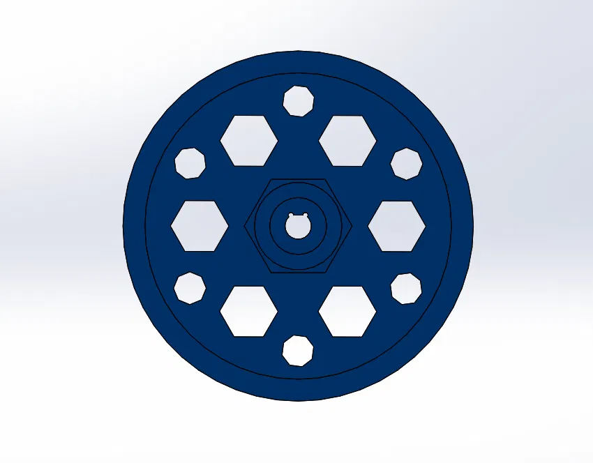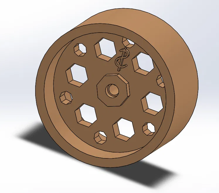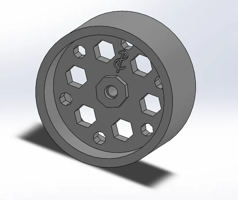 Wheel hub: In bằng PLA, PETG, hoặc ABS với infill 40–50% để cứng vững.
