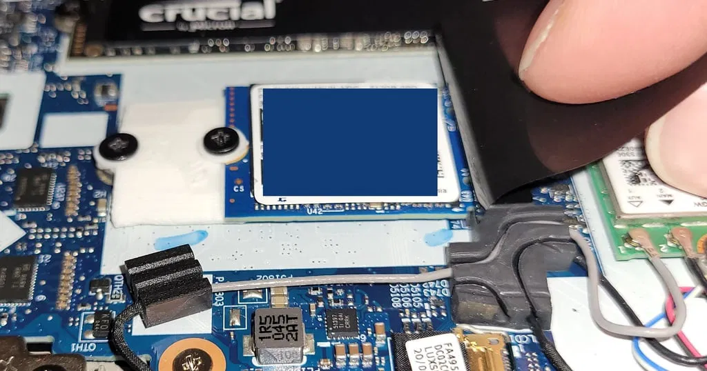 - Washer đặt Ở PHÍA TRÊN SSD, áp vào đầu vít. Nếu dùng mà không có washer thì bạn có nguy cơ làm hư mainboard. Trước khi lắp, hãy thử vặn vít M.2 và đảm bảo khi vặn vào thì đầu vít không thò xuống dưới đáy của phần in.