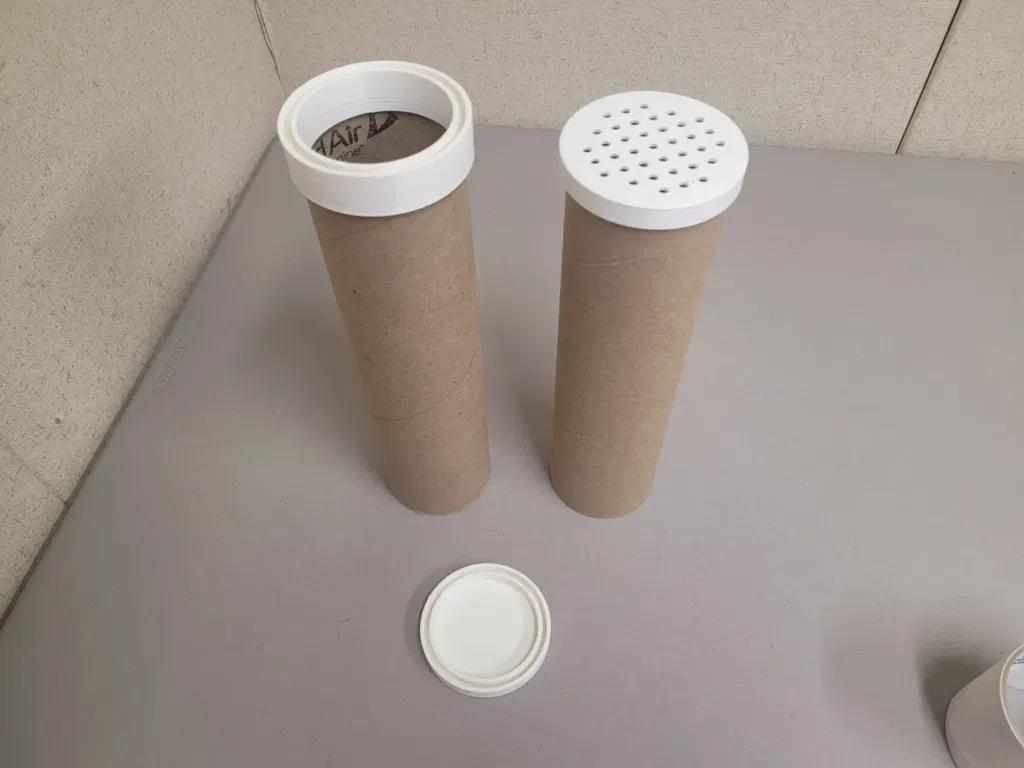 Thiết kế nắp bịt và coupler cho ống carton từ cuộn painters tape, packing tape hoặc bubble wrap. Có bản mặt kín và bản vented (lỗ 5mm/2.5mm), giúp ghép ống làm hộp tròn nhiều kích cỡ.