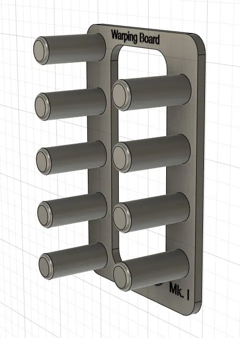 Warping Board Mk I là warping board dùng cho khung dệt (weaving loom), giúp chuẩn bị bộ sợi warp dài khoảng 1,5 foot. Khuyến nghị in bằng PETG/ABS; nếu in PLA thì tránh căng sợi quá chặt lên các peg.