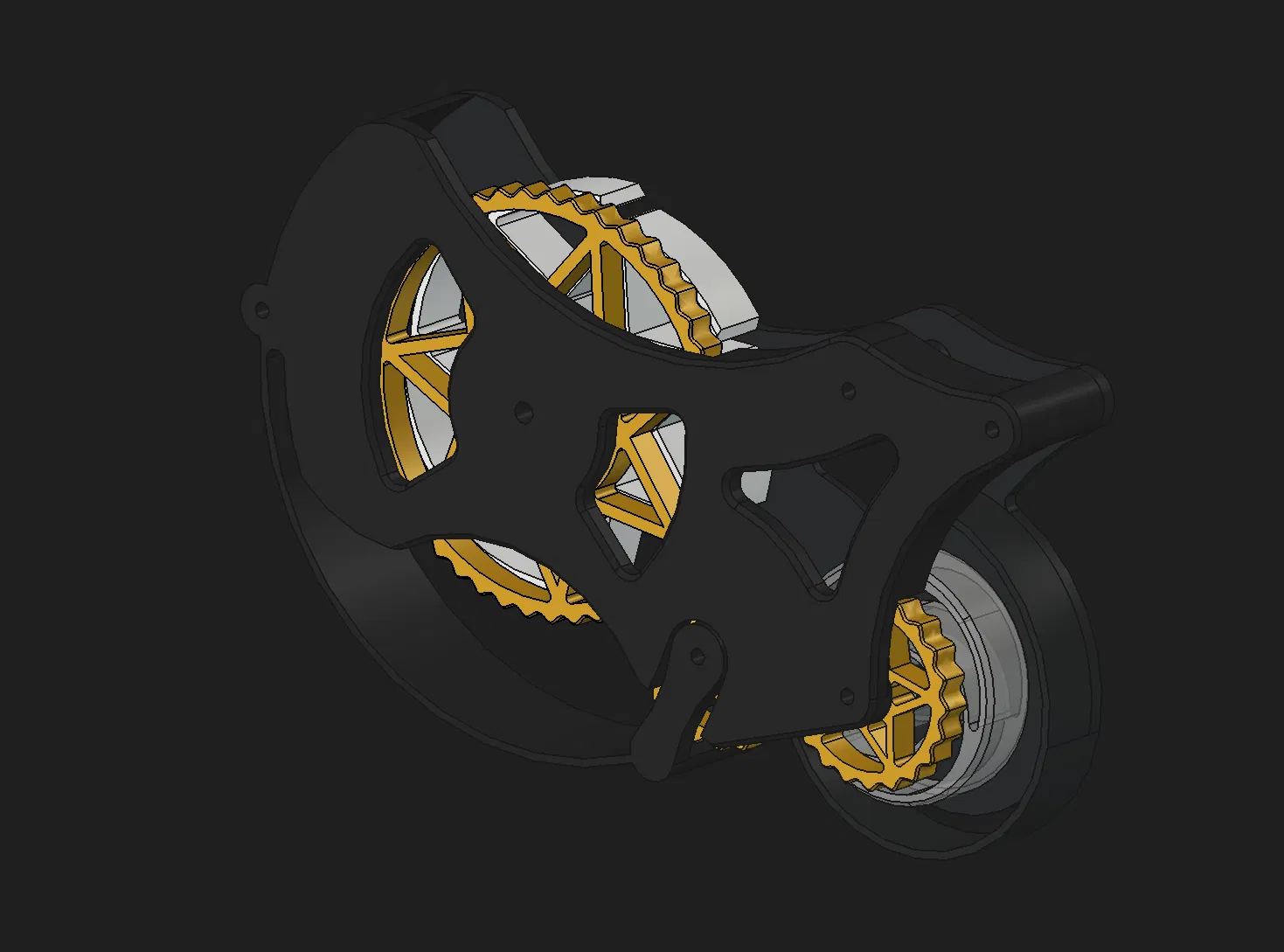 Mình in bánh răng và hub bằng PETG (khuyến nghị vì có độ dẻo). Vật liệu cho khung thì không quá quan trọng; mình dùng HT-GF-PLA vì sẵn có. In 2 cái bánh răng nhỏ, các phần còn lại chỉ cần 1 cái.