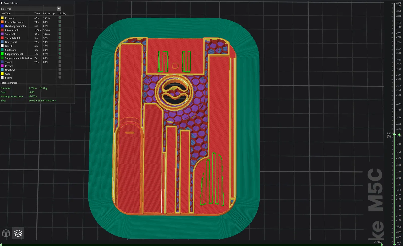 • Supports: snug, rectilinear