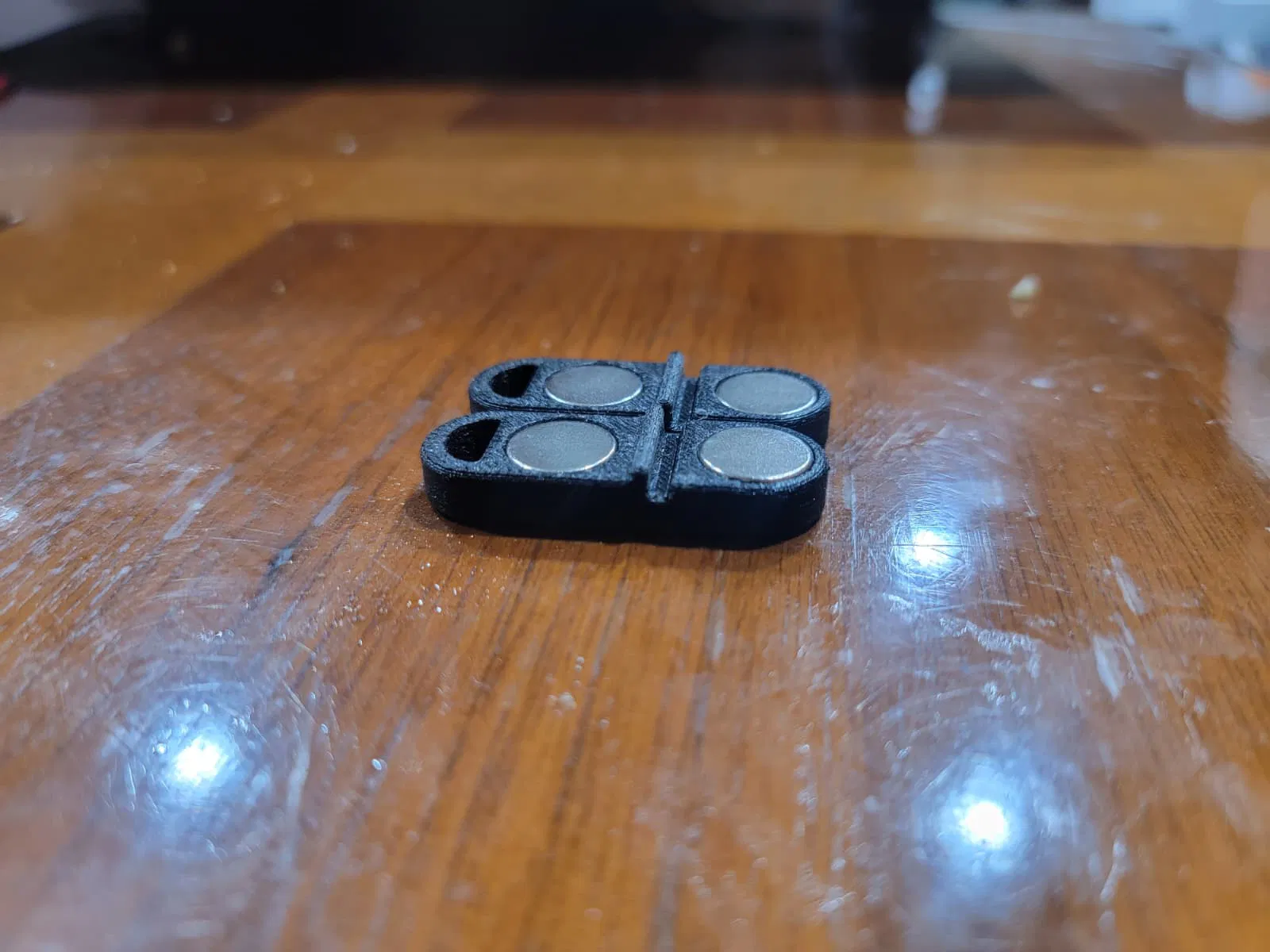 Đây là cái đầu tiên mình thử. Nó dùng kiểu khớp dạng dovetail nhỏ và bạn phải trượt hai phần vào nhau từ bên hông. Mình nhanh chóng nhận ra là khi đã gắn nam châm thì thao tác này khá phiền, nên mới có biến thể 2.