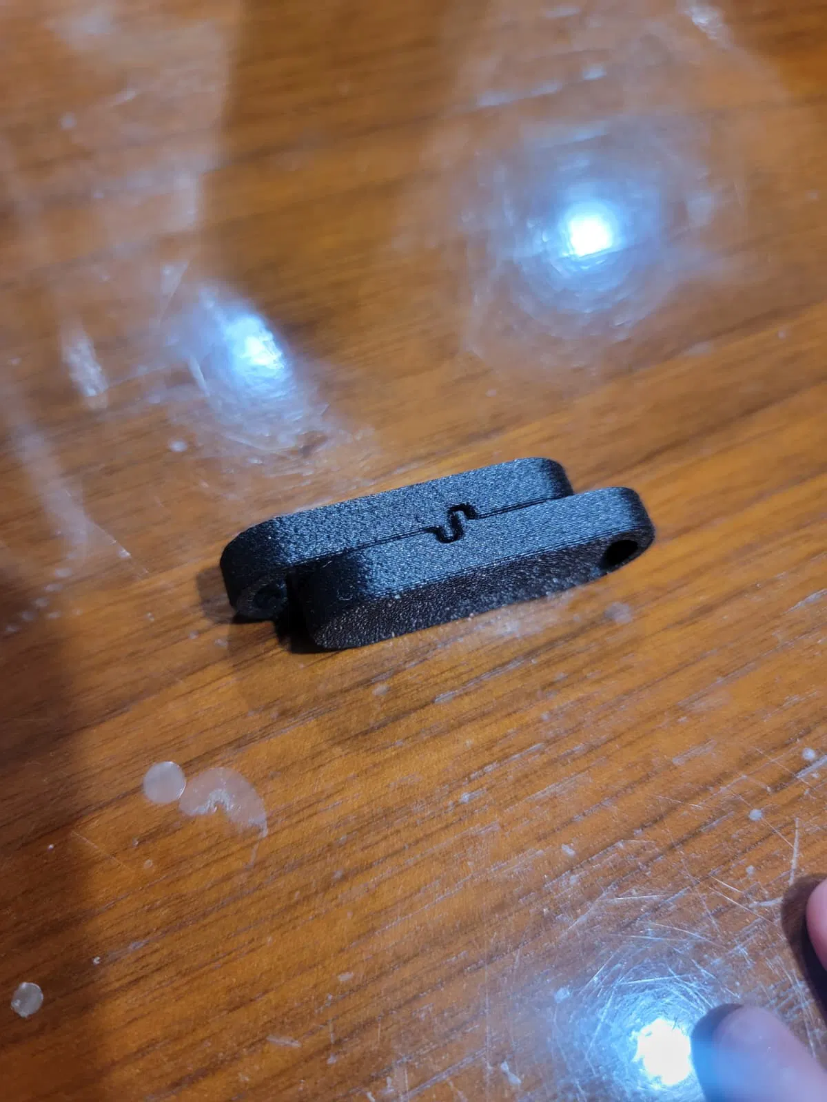 Với biến thể này, mình làm phần connector nghiêng, nhưng vẫn in dễ dàng mà không cần supports. Phần tab bo tròn hơn — ý tưởng là khi làm dày phần chân thì sẽ càng khó bị gãy theo các layer lines (tới giờ mình chưa gặp vấn đề, chỉ là muốn làm cho bền hơn). Gắn “snap” vào nhau rất ngon và cân bằng hơn khi móc lại.