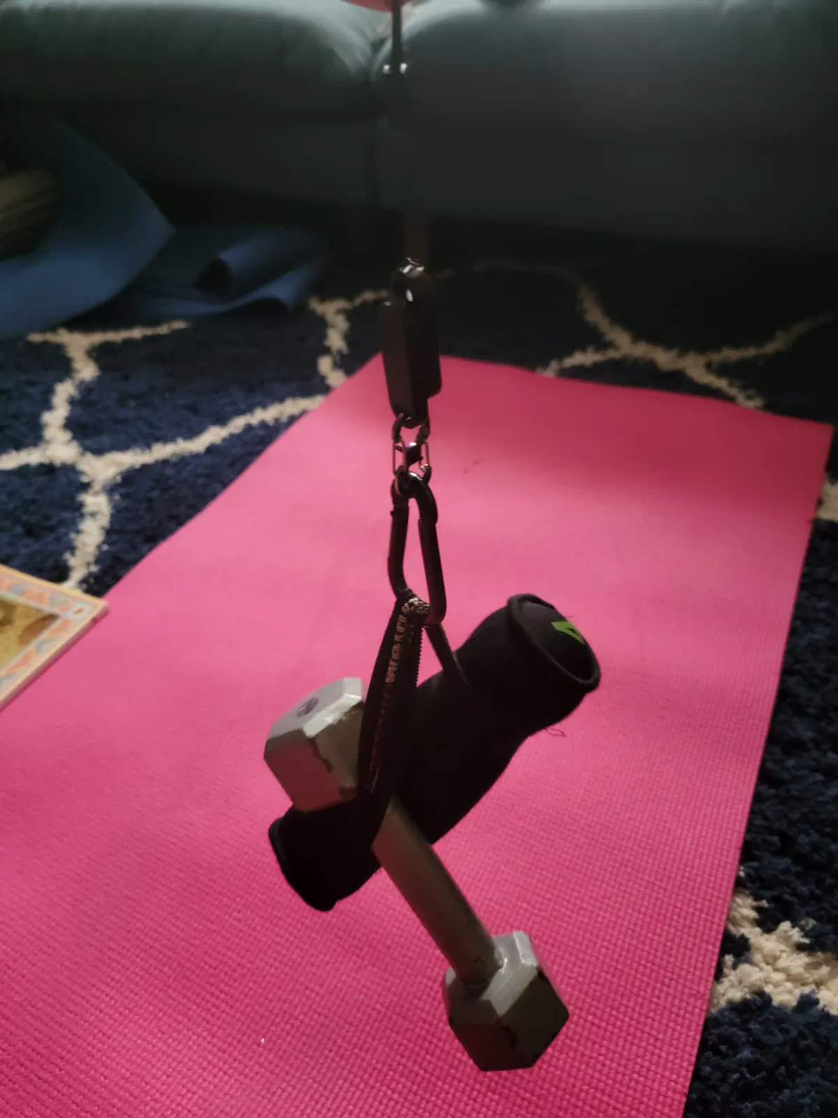 Cái này dùng các “tab” hơi bo tròn, kiểu như cắm vào rãnh của miếng bên kia. Khi đã gắn nam châm, chúng trượt vào vị trí rất dễ và có thể chịu ít nhất 10 pounds (xem hình cuối). Mình không có thêm tạ để test tiếp, nhưng nhìn chung khá chắc và gọn, chỉ hơi bị lệch trọng tâm một chút.