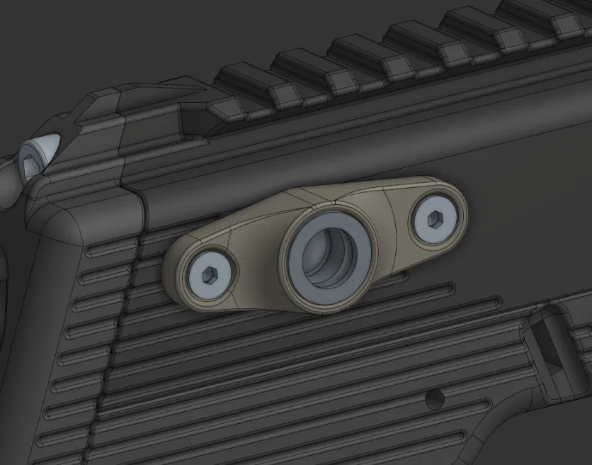 Một ngàm QD sling đơn giản cho GP9 và vài món khác. In phần cup bằng vật liệu cứng, còn phần mount thì in bằng vật liệu bạn thích, rồi dán keo hai phần lại với nhau.