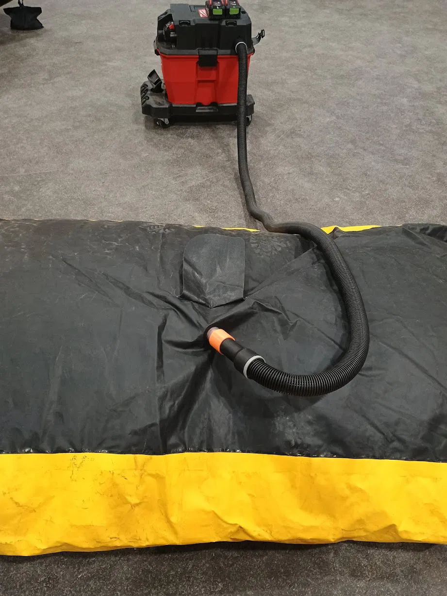 Đầu nozzle này lắp kiểu friction fit lên các đầu vacuum 1-7/8", vặn ren vào cổng vent của Airups barricade, và giữ cho nó mở ra để hút. Nếu không thì đầu hút có thể bị tuột, hoặc mặt bên kia của barricade bị hút dính vào cổng và làm ngừng xả hơi.