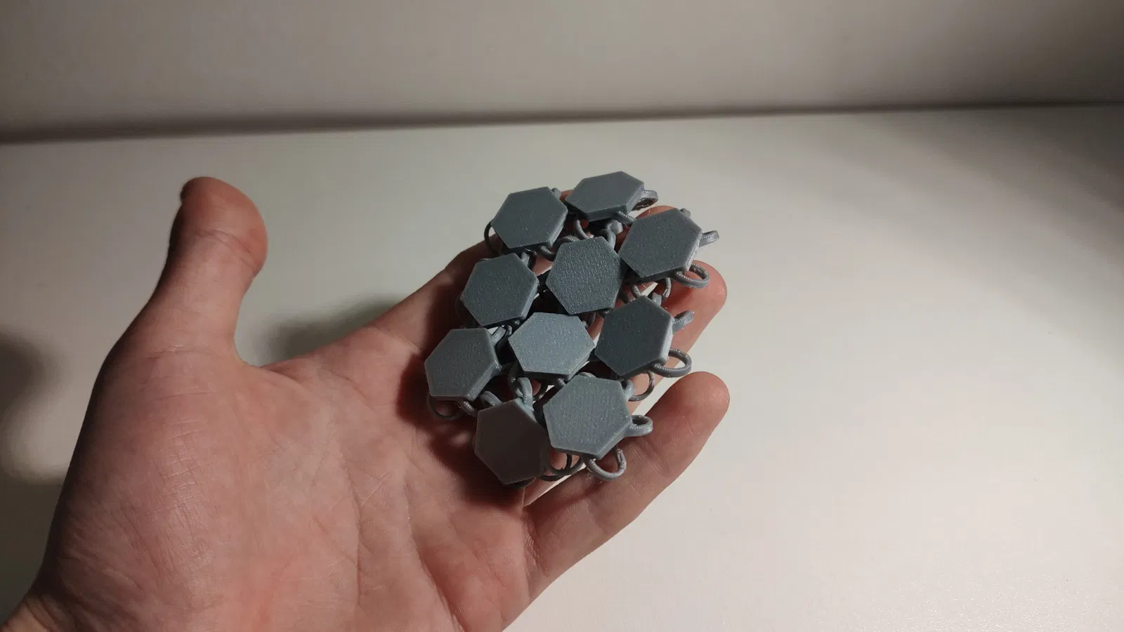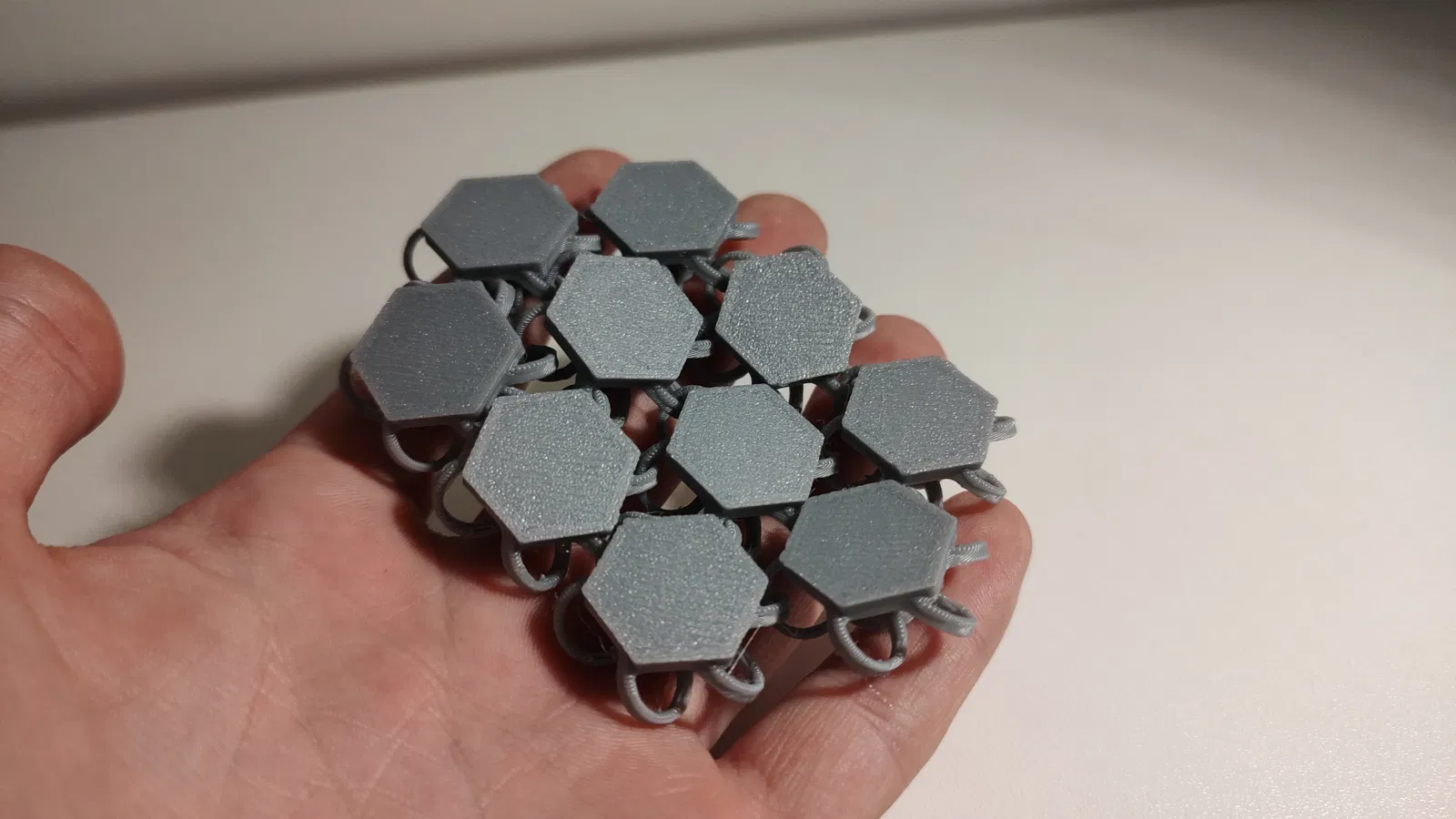 Vải mô-đun in 3D với thiết kế lục giác hiện đại. Mẫu này articulated hoàn toàn, cho phép gấp, rủ, và chuyển động như chainmail thật. Rất hợp cho cosplay, nghịch tay (fidget), hoặc làm phụ kiện phong cách công nghệ.