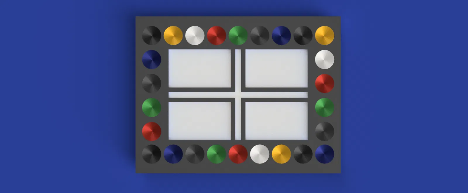 Một mẫu bảng pha màu 26 ô tiện dụng, dễ in, dành cho họa sĩ, người sơn mô hình mini và dân hobby. Vòng ngoài có 26 ô tròn, rất hợp để đựng lượng màu nhỏ; phần trung tâm có 4 khu pha được chia ngăn để trộn và thử nghiệm các sắc độ sơn.