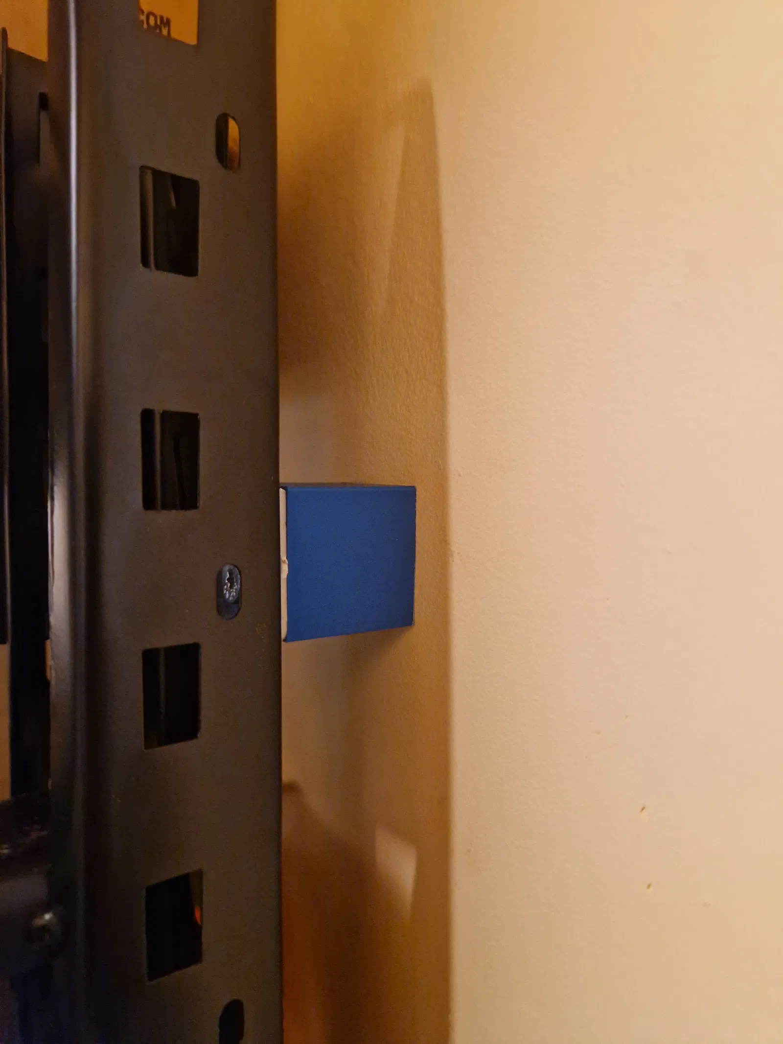 Một miếng spacer hình vuông có lỗ ở giữa, lắp phía sau kệ/giá và bắt cố định vào tường.