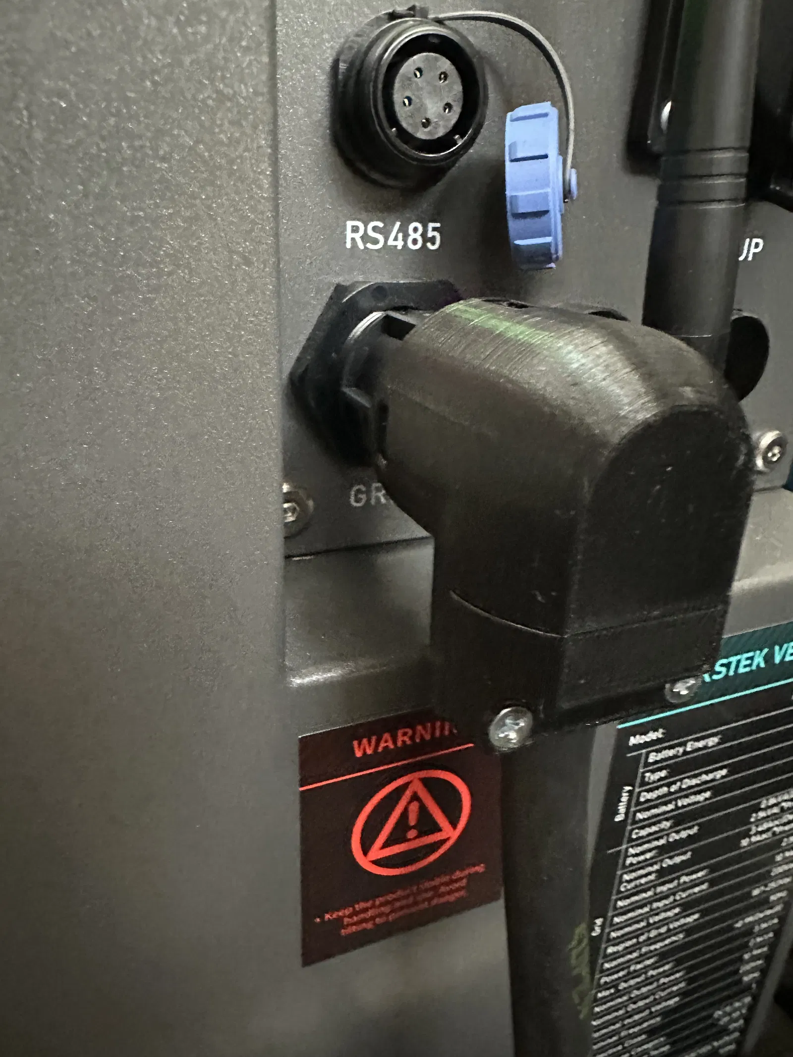 Mình làm mẫu này vì muốn đặt pin Marstek vào flight case và thấy connector thẳng zin quá cồng kềnh, không phù hợp. Để tránh mất/void bảo hành, mình không chỉnh sửa connector zin. Thay vào đó, mình dùng một connector BC01 mới và thiết kế một vỏ góc vuông bao quanh nó.