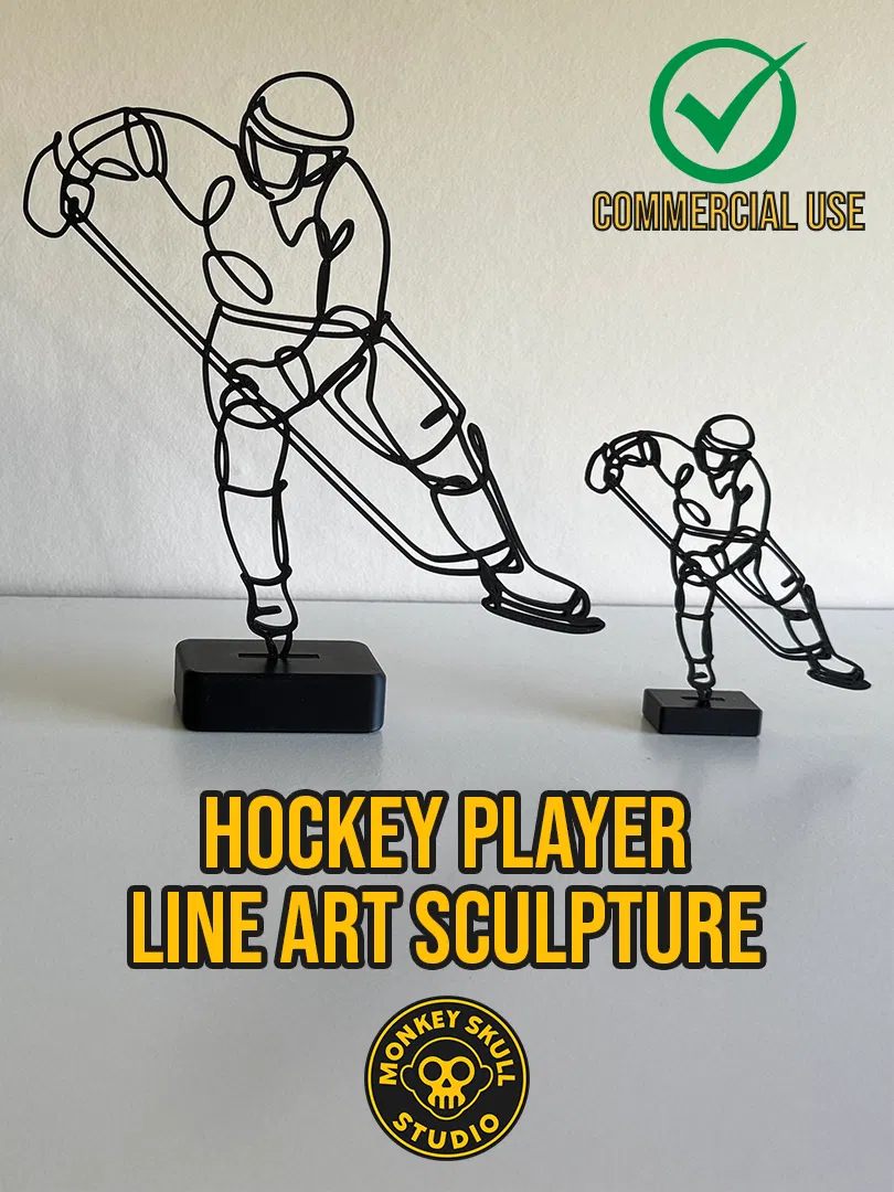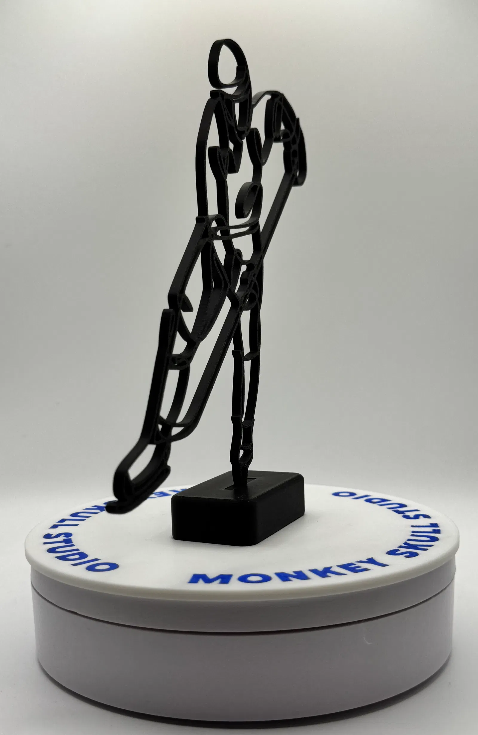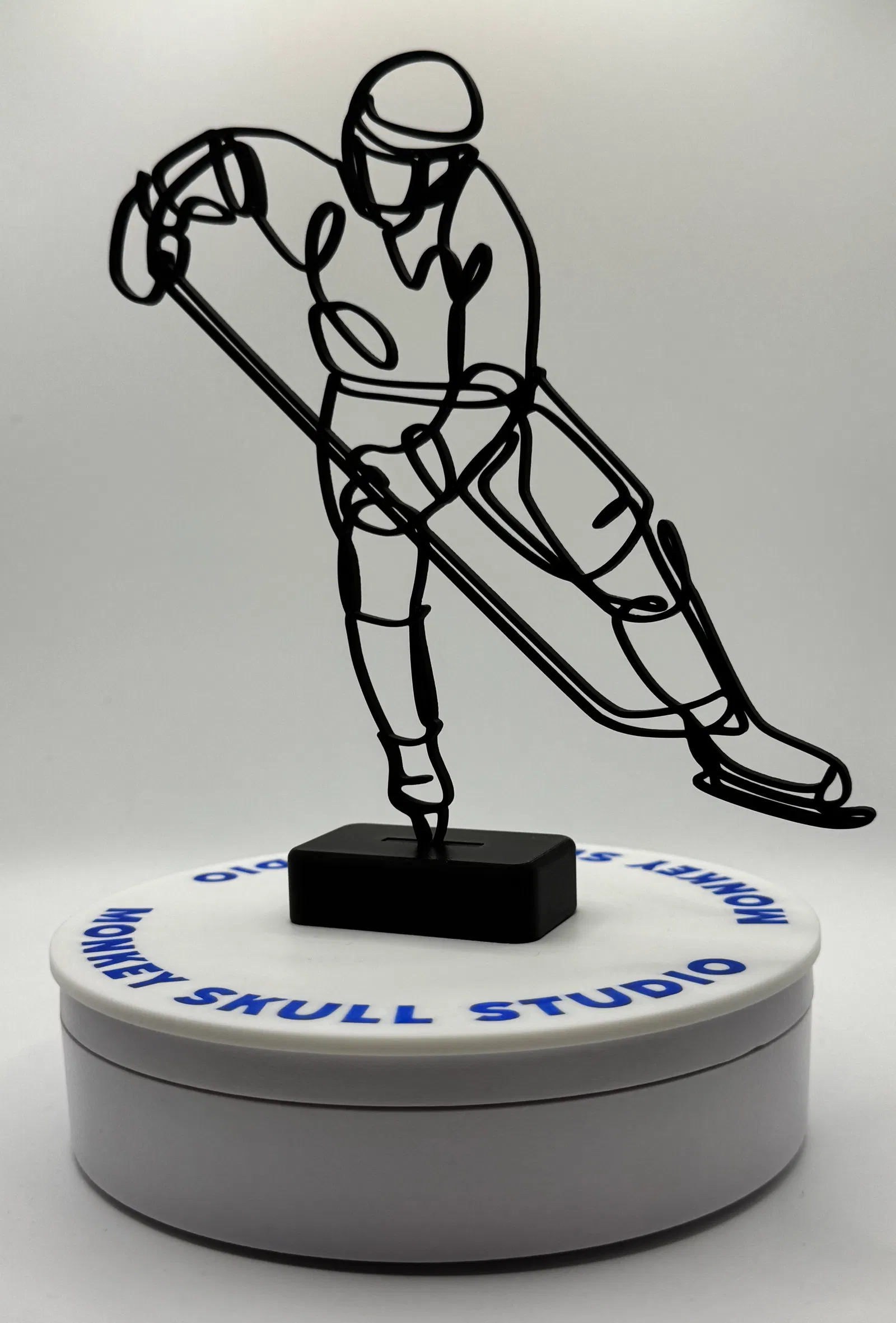 Tượng line art vận động viên hockey phong cách tối giản, tạo cảm giác tốc độ và chuyển động mạnh mẽ. In FDM với PLA, không cần supports, khuyến nghị layer 0.16 mm. Có 2 kích thước kèm chân đế lắp khe, không cần keo.
