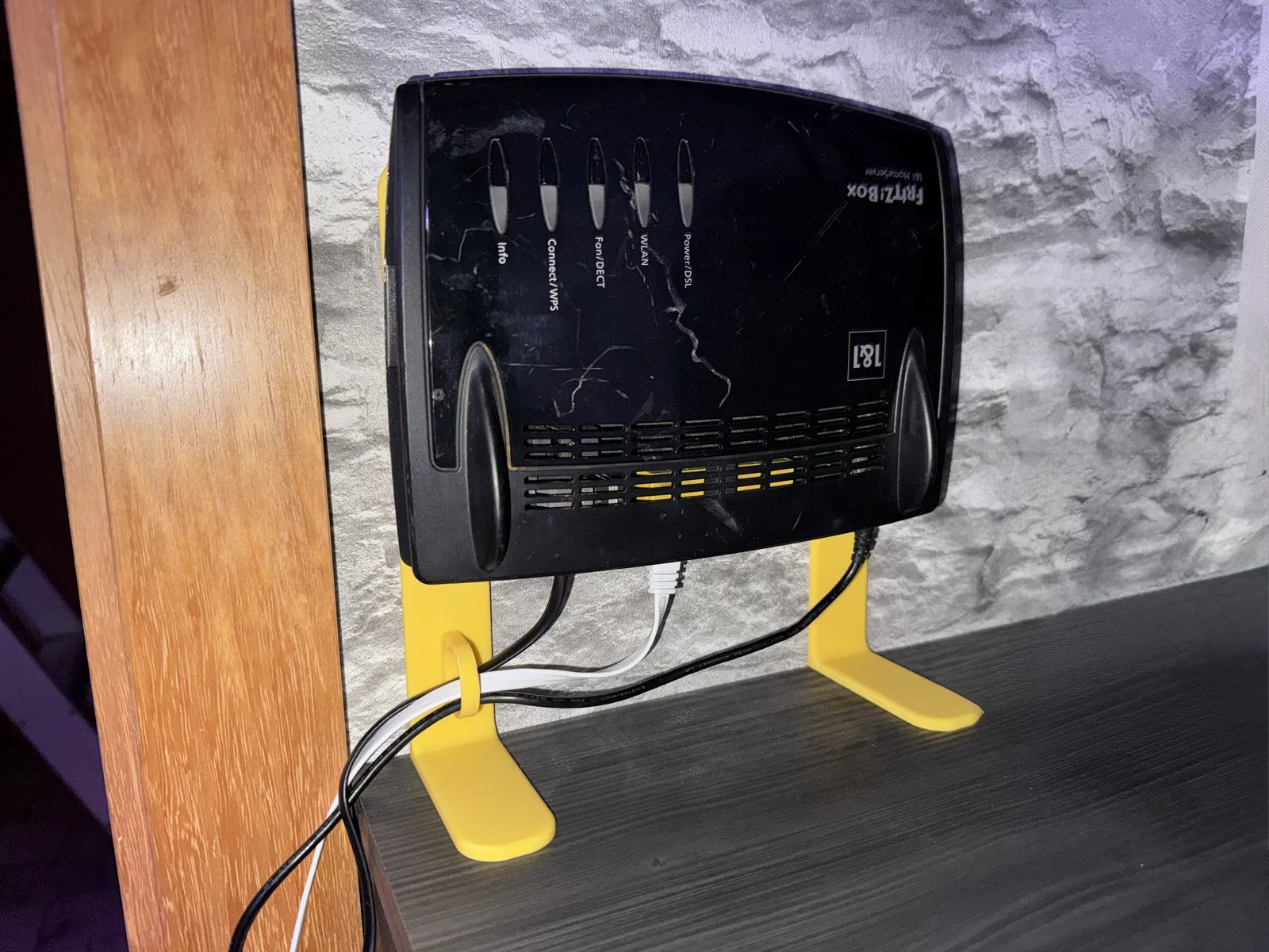Chân đế dựng đứng dành riêng cho FRITZ!Box 7520, giúp để router gọn gàng, tiết kiệm diện tích và đứng rất chắc. Có bản tùy chọn kèm cable guide để đi dây ngăn nắp. In support-free, hợp PLA/PLA+.