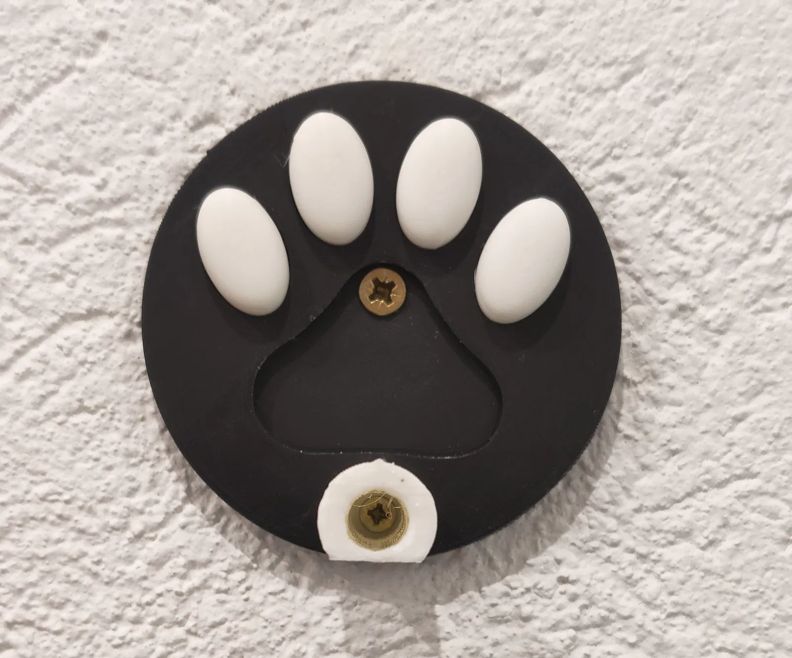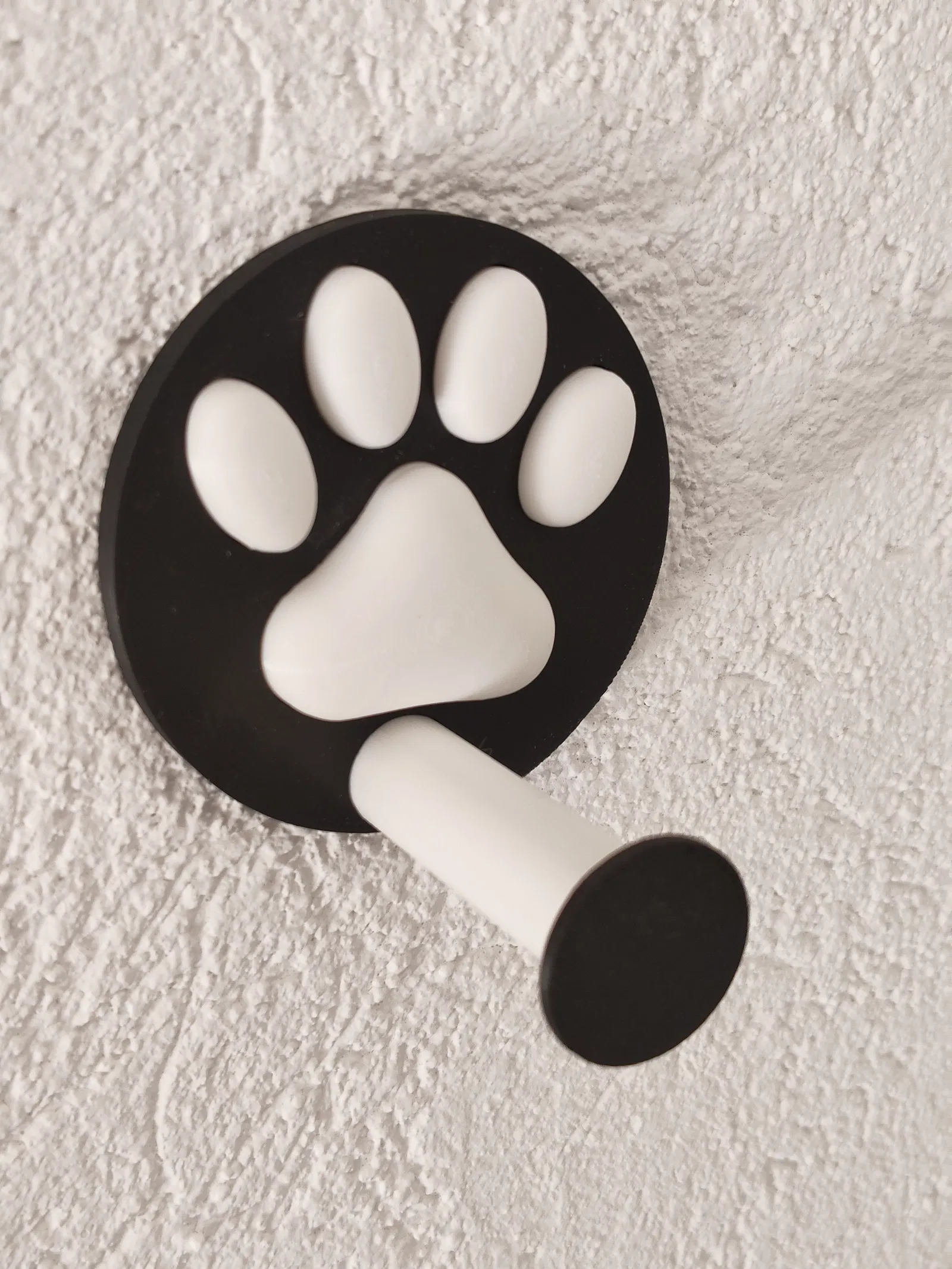 Móc treo gắn tường hình bàn chân dễ thương để treo leash, harness, collar cho thú cưng. Bắt vít chắc chắn (vít giấu kín) hoặc dán keo. In không cần supports, multi-color nhờ các chi tiết tách rời.