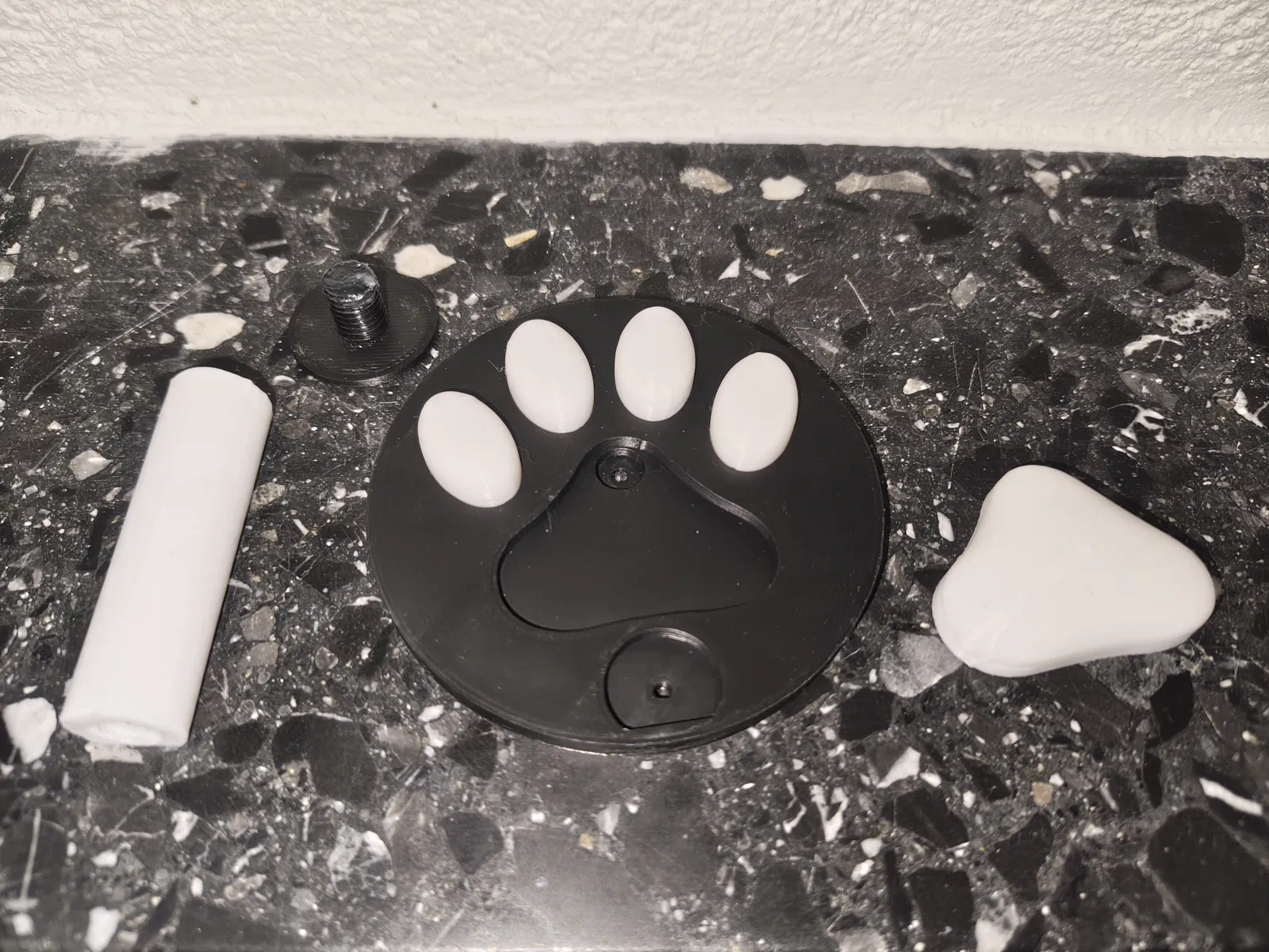 Các miếng đệm bàn chân (paw pads) là chi tiết riêng và cần gắn bằng băng keo 2 mặt (khuyên dùng để dễ tháo) hoặc keo dán.