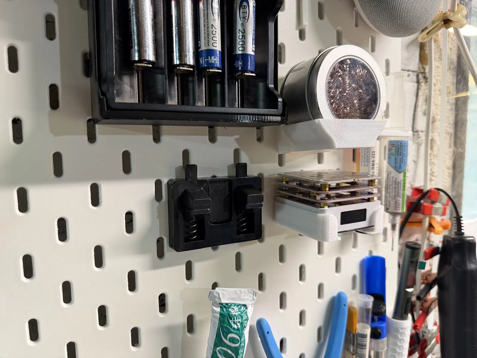 Mẫu ngàm gắn kẹp giữ dây (wire holder) dành cho bảng pegboard IKEA SKÅDIS, giúp cố định và đi dây gọn gàng. Phù hợp để in 3D và lắp trực tiếp lên SKÅDIS.