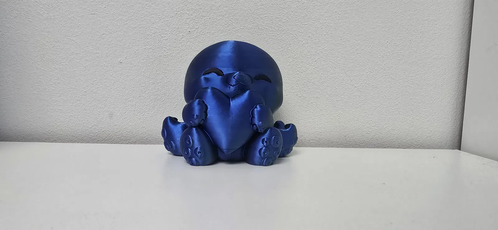 Mẫu bạch tuộc Valentine dễ thương màu xanh silk (xanh ánh kim) đang ôm trái tim, hợp in 3D để làm đồ trang trí hoặc quà tặng. Phong cách cute, chủ đề tình yêu, biển và Valentine.