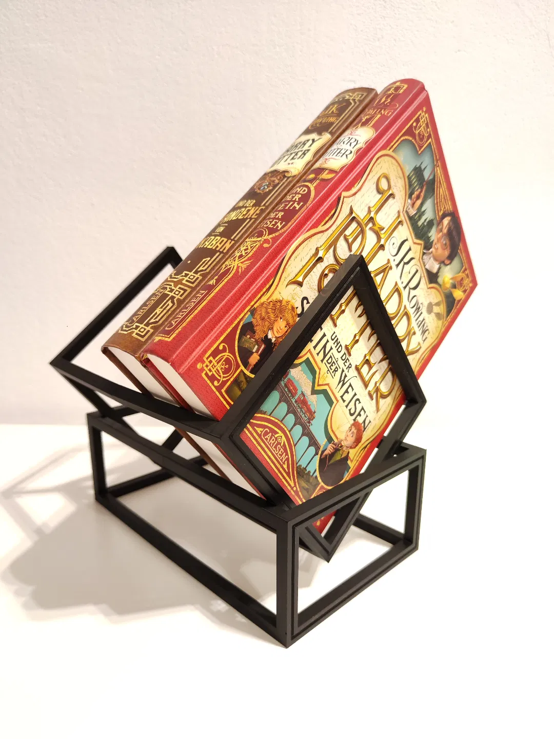 Giá đỡ sách phong cách hiện đại, tối giản, hợp cho sách bìa mềm và cả sách hơi lớn hơn. Các chi tiết in xong lắp nhanh, trưng được ở phòng khách/bếp/văn phòng. Không cần supports, có thể gia cố bằng keo nếu muốn.