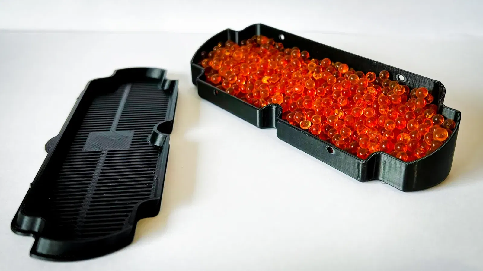 Một khay có thể tháo rời để phù hợp với AMS với nắp để bạn có thể nạp/nạp lại hoặc thay thế các hạt hút ẩm.