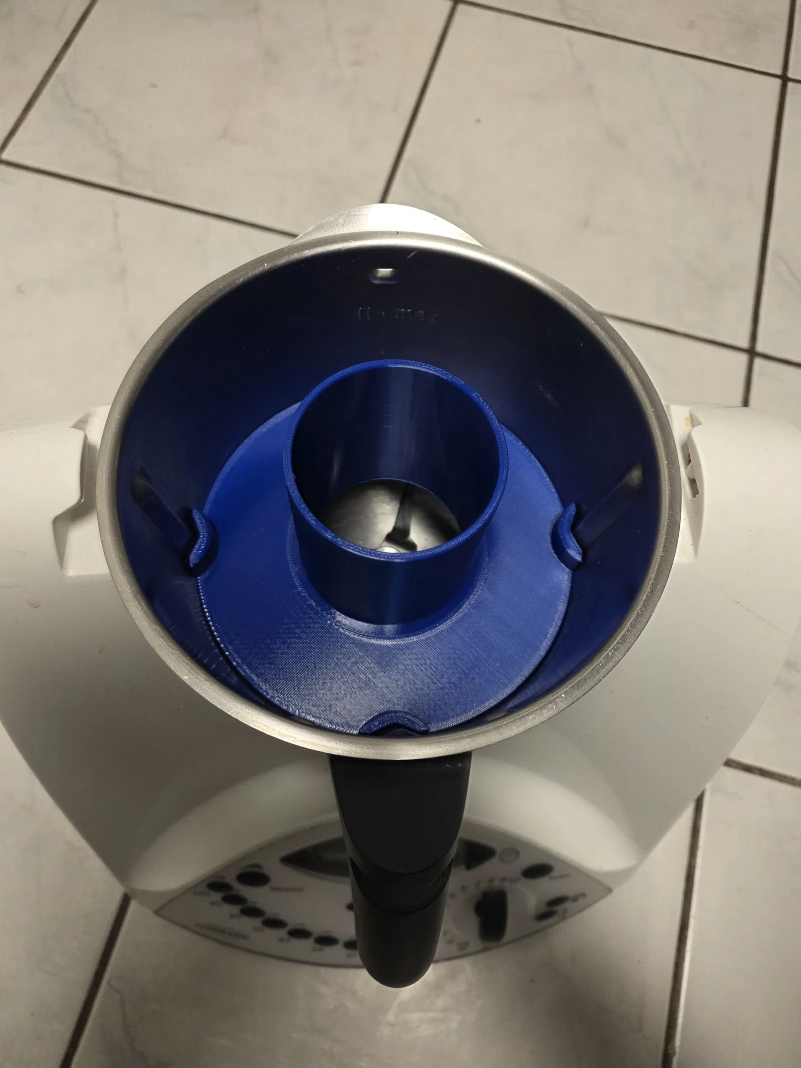 Thermomix TM31 Topfverkleinerer có phần đáy đóng kín, giúp giảm dung tích cối. Phù hợp khi xay/nghiền lượng nhỏ để nguyên liệu không bị dàn ra khắp cối. Mẫu được tác giả in bằng PETG.