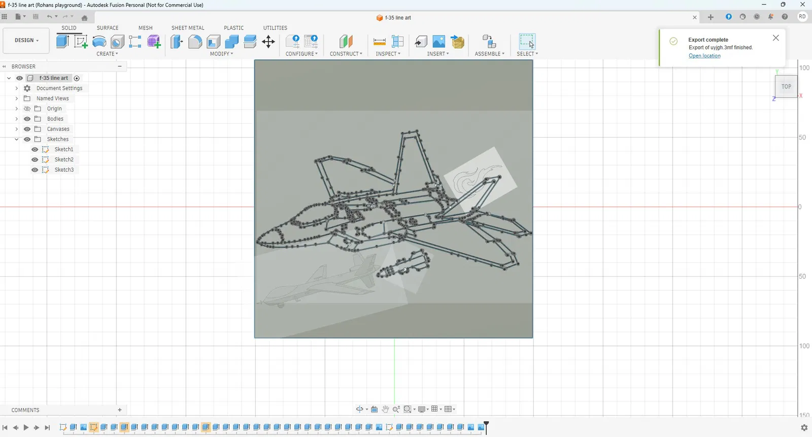 Mẫu line art tiêm kích đang bắn tên lửa vào UAV drone. Khi import, chọn “Load multiple objects as a single part”. Line dày 0.8mm, base dày 2mm; in 10% Gyroid infill, không cần supports.