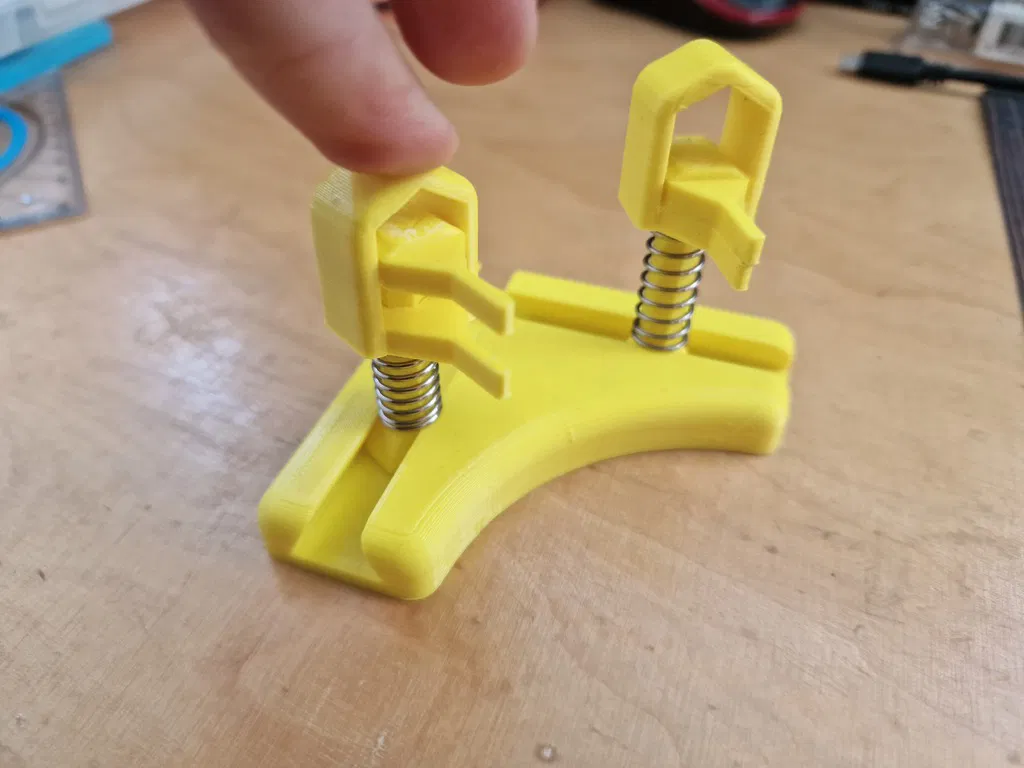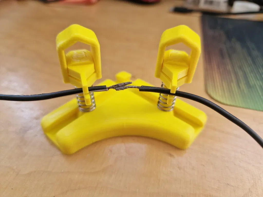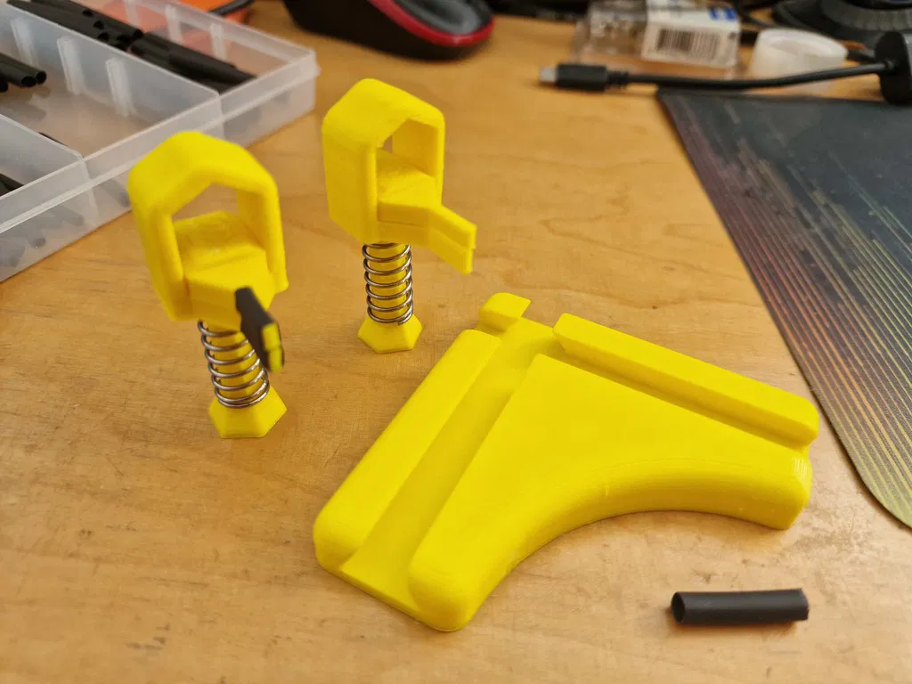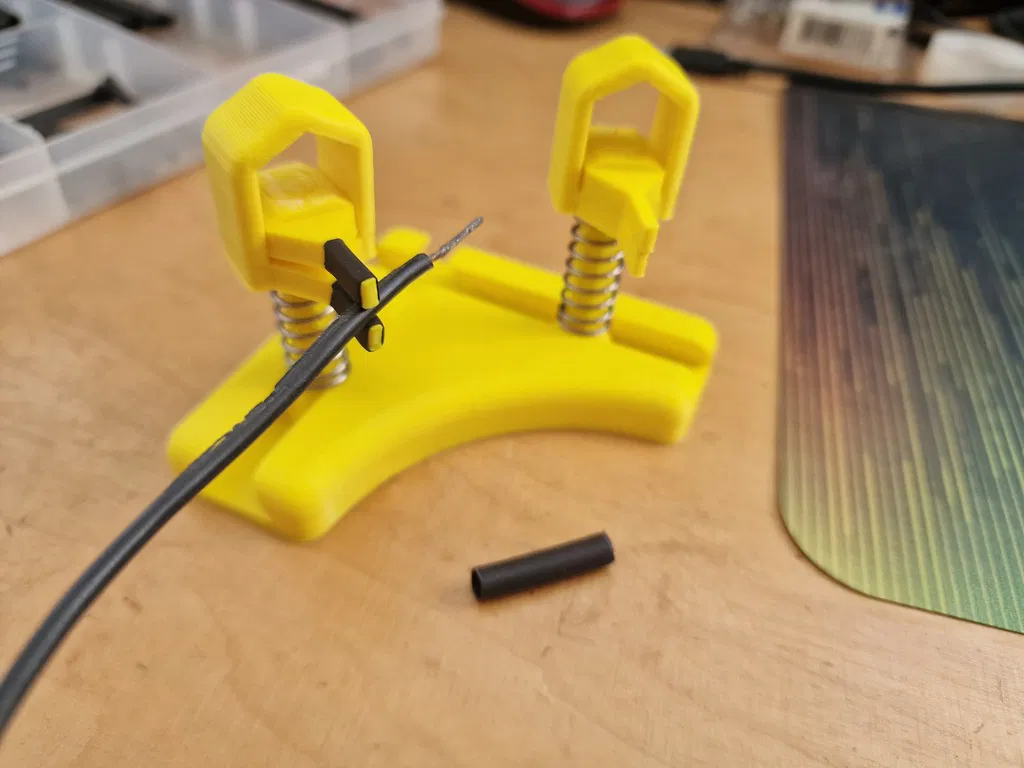Tay kẹp phụ hỗ trợ hàn, giúp giữ linh kiện điện tử ổn định trong lúc soldering. Dùng lò xo 25mm (OD 10mm), có nhiều phiên bản đầu kẹp; khuyên dùng bản kẹp chắc hơn và bọc heatshrink để tăng độ bám.
