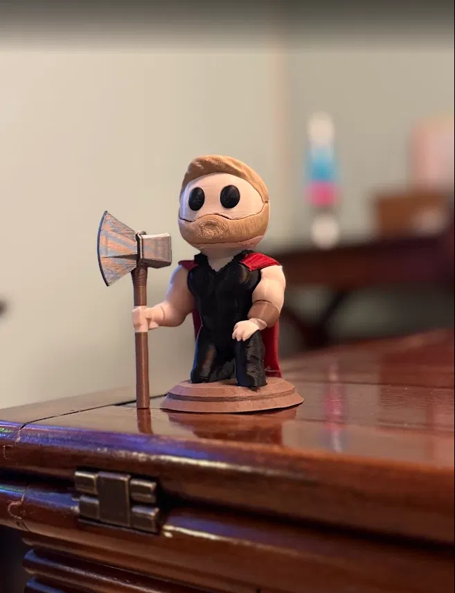 Mẫu 3D THOR: AVENGERS DOOMSDAY DOUBLE BIT phong cách mini/chibi lấy cảm hứng từ MCU. File đã được slice tối ưu để giảm tối thiểu việc purge màu khi in nhiều màu, giúp in gọn gàng và tiết kiệm vật liệu.