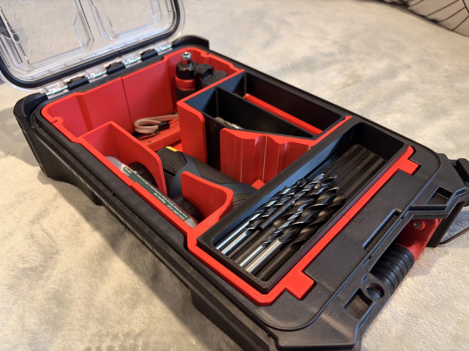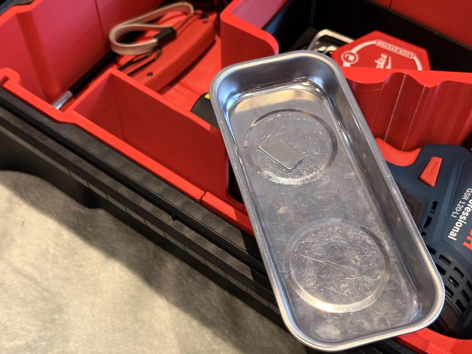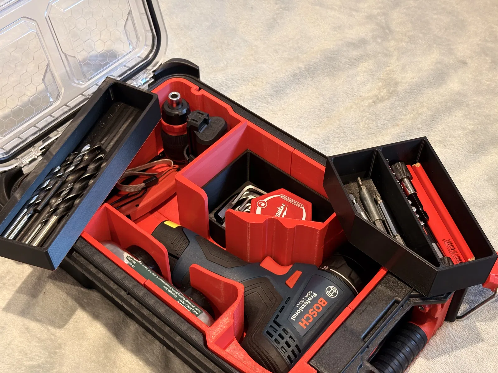 Khay insert dành cho hộp Milwaukee Packout organizer, thiết kế vừa cho máy khoan Bosch GSR 120-Li. Thích hợp để sắp xếp gọn gàng trong Packout; thông số in gợi ý: layer height 0.20, infill 12%, 2 perimeters.