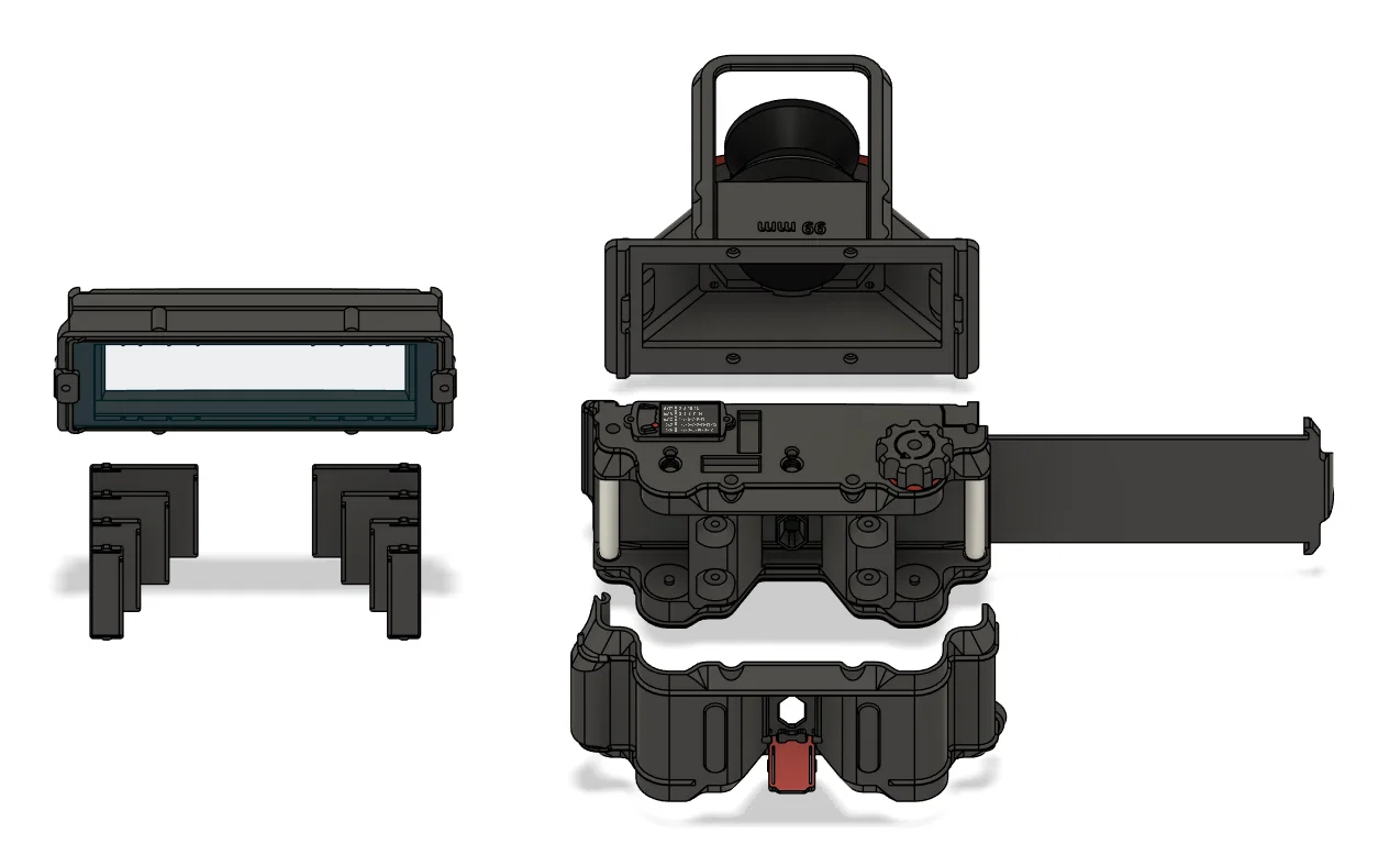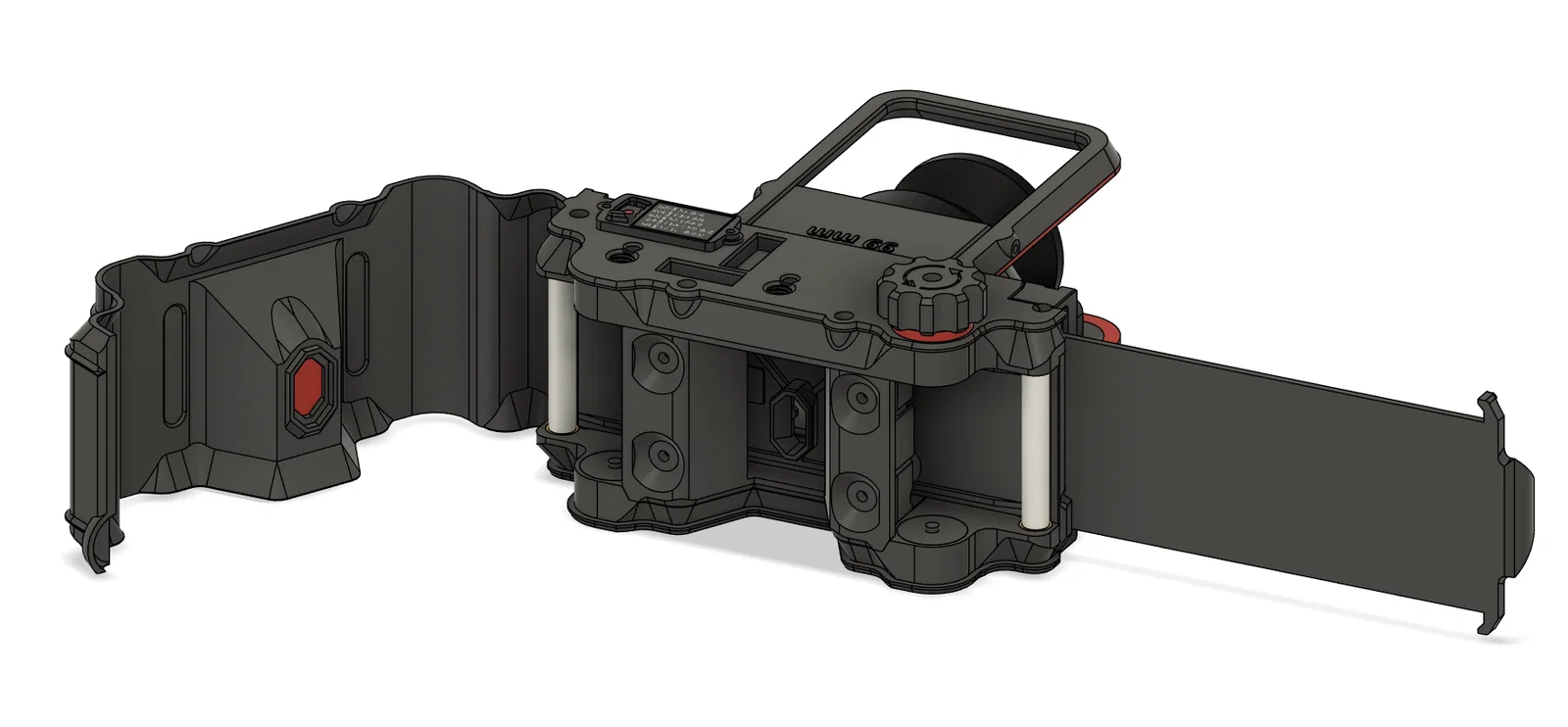 Lens cone và focusing screen được làm trong các project Fusion 360 riêng và được đưa vào project chính dưới dạng component. Nghĩa là khi mở project chính bạn sẽ thấy toàn bộ assembly, nhưng muốn chỉnh cassette hoặc focusing screen thì bạn cần mở đúng project tương ứng.